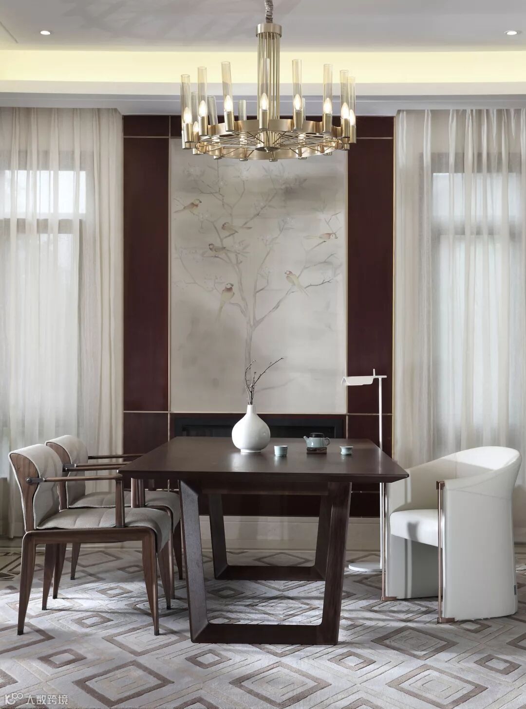 现代设计柔和中式的传统元素打造出融于一体的新中式设计,设计师将“融”的概念贯穿始终,在空间的各个角落诠释新中式的独特韵味。