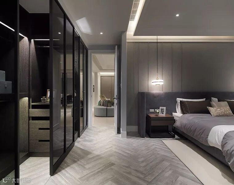 大理石、线板烤漆、镀钛膜、仿石材石英砖、实木皮五项精简元素贯穿整体,但在不同的空间里填上专属色彩。