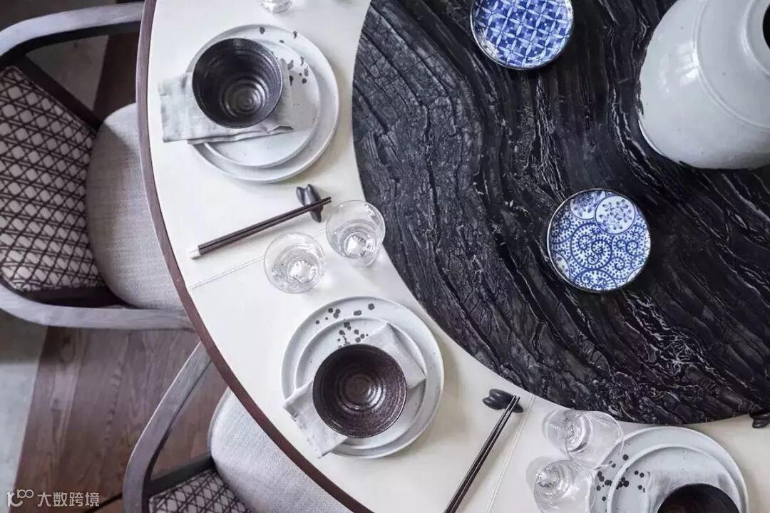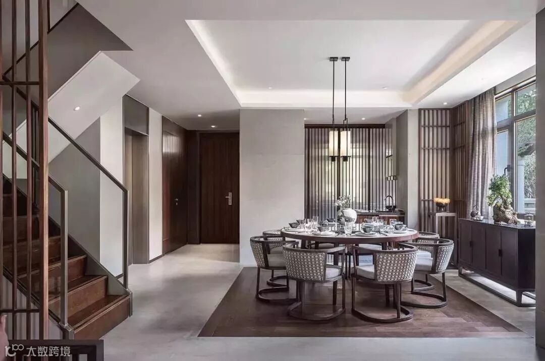 餐厅设计不仅延续了含蓄、高雅的生活方式与礼制之道,提炼出经典元素加以简化和丰富,圆形实木餐桌更显简约与流畅,营造安静、舒适的用餐空间。