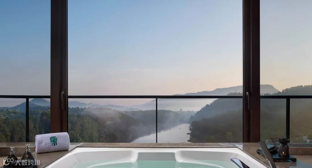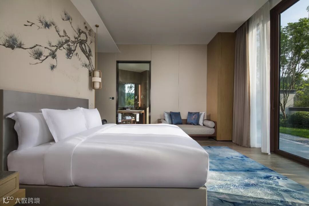 室内布局上,观山面水,几乎所有的客房的床都正对景观面布置,让宾客无论坐卧都能将景色尽收眼底。
