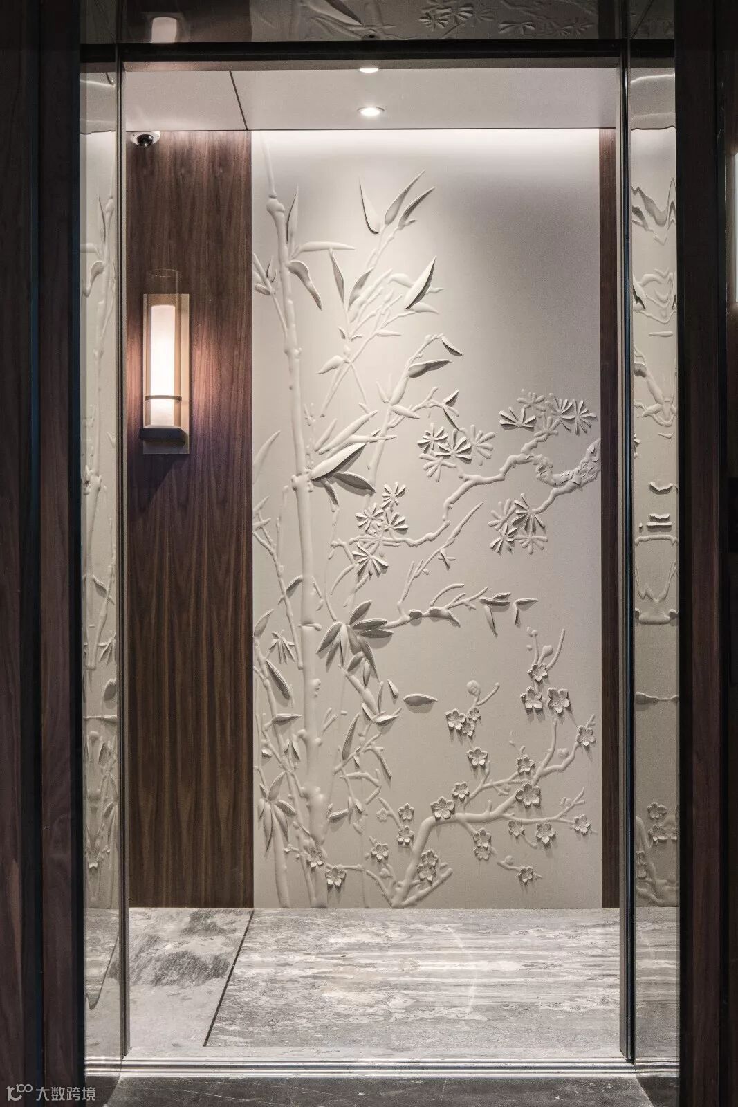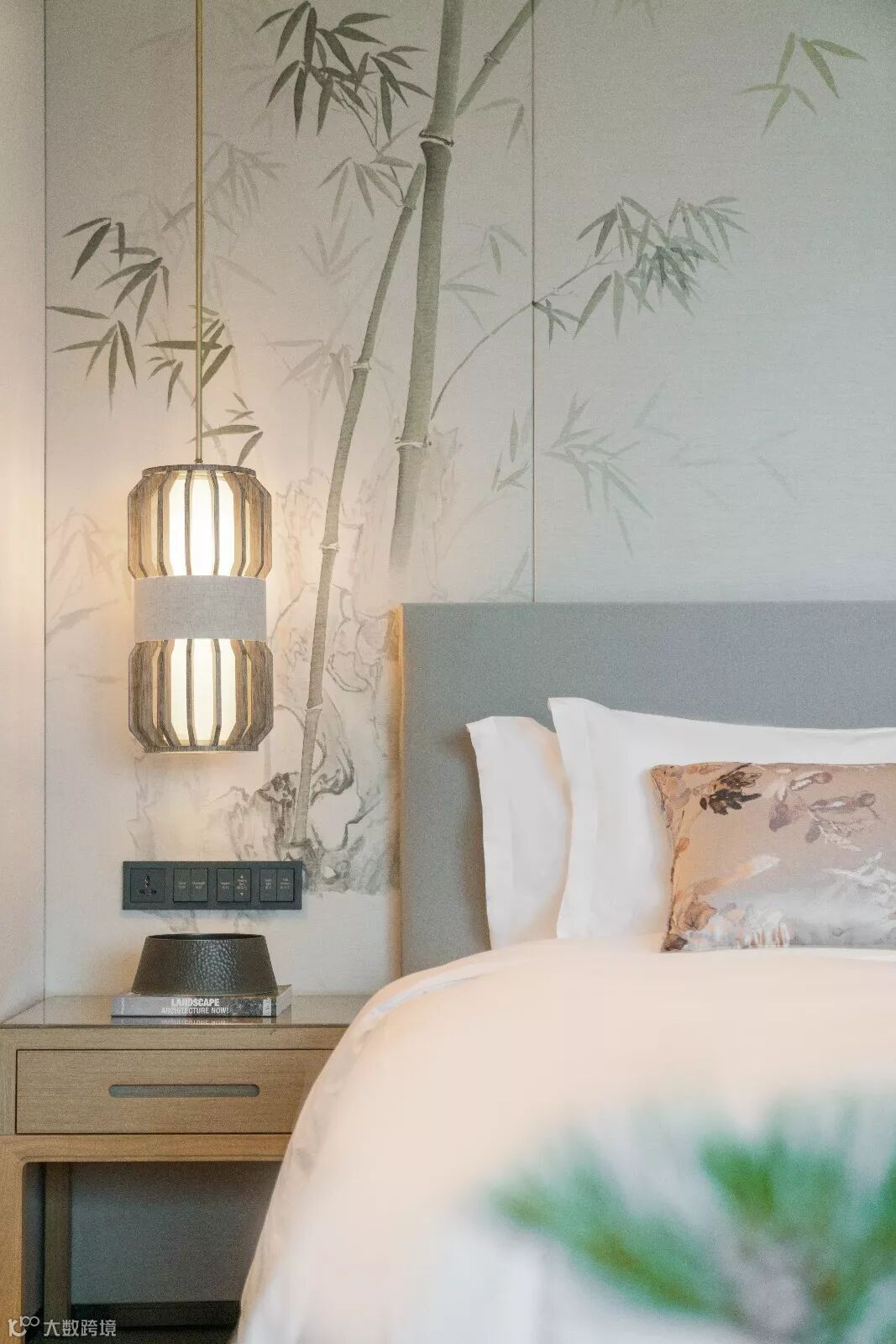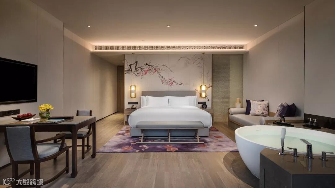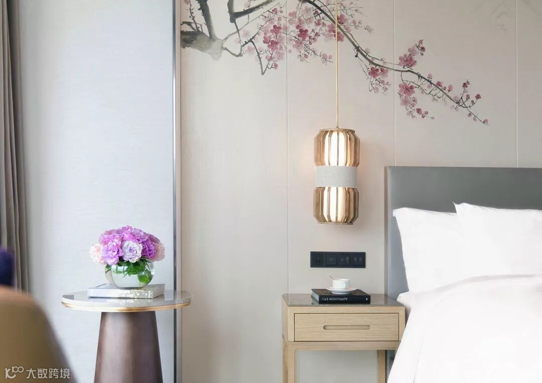 室内设计希望给宾客创造一种放松而宁静“家”的氛围,木质的地板亲和舒适,丝质墙纸散发微光,响应“松、竹、梅”主题.