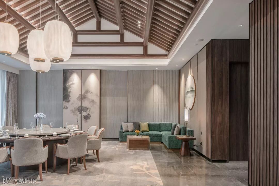 创造舒展轩阔的当代空间感受,并敷以温暖优雅的传统材质与色彩,其间点缀以中式盆景、抽象艺术以及金属细节的灯笼,使人游走于古典与现代之间,而丝毫不觉冲突。