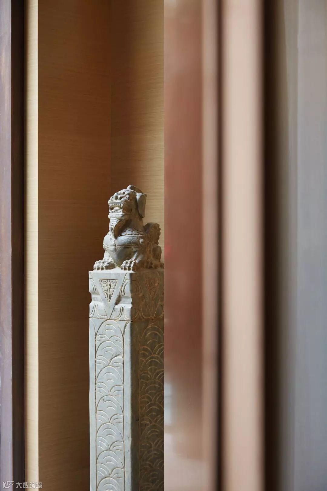 玄关,以一尊石雕的拴马柱来开启中国印象的大门。拴马桩石雕是我国北方独有的民间石刻艺术品。人们称它为“庄户人家的华表”。