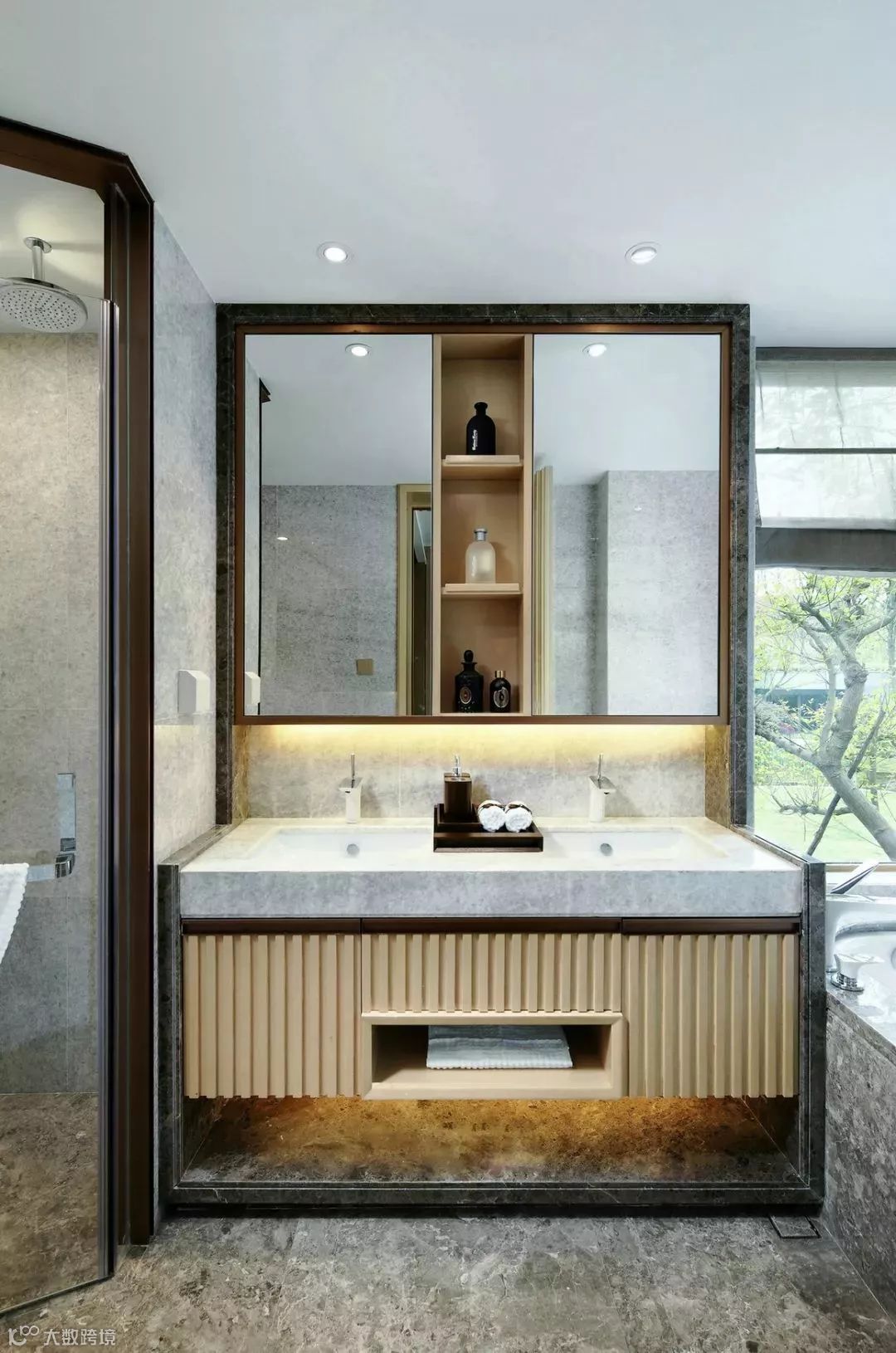 倚靠大自然礼赞的水色山林,以刚柔并陈的朴实家具和合理细致的功能区分,架构出以人为主、以环境为辅的生活场景。