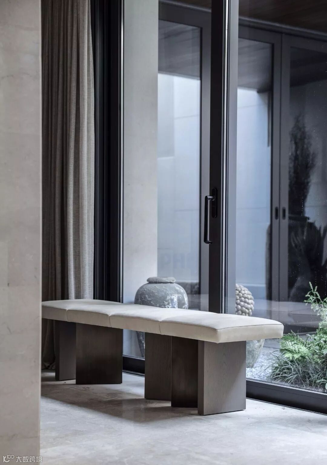 在这里,材质和色彩被极尽的克制,饰品的摆置亦讲求点到为止,临窗而立的三樽玻璃瓶,内盛“半满”的水,水润泽万物而生生不息,最是自然。