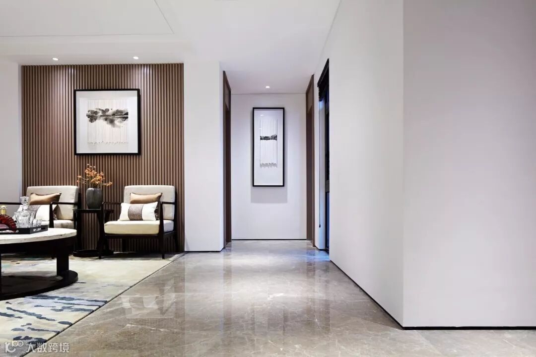 空间的整体视觉以白色、木色、暖灰色为主调,辅以一些清透,灵动的山水画点缀其中,体现现代中式中的含蓄之美。化繁为简,注重细节及比例美感,强调合理空间布局与使功能完美结合。