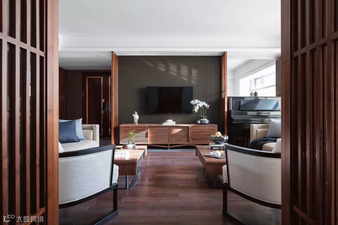 延续古色古香之意,木制镂空的格栅门在开合之间制造空间的变化,巧妙的设计中带着对传统文化精髓的美好追寻。