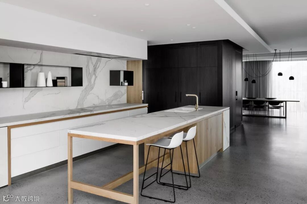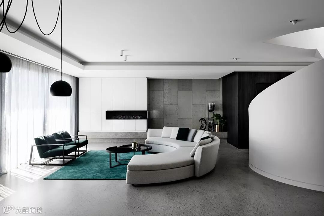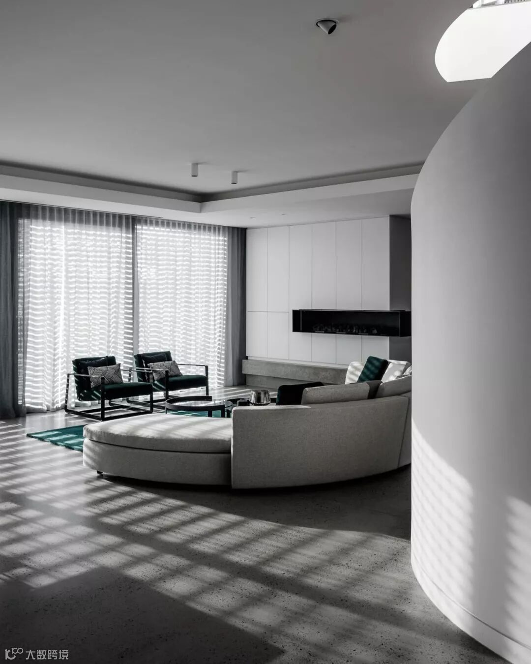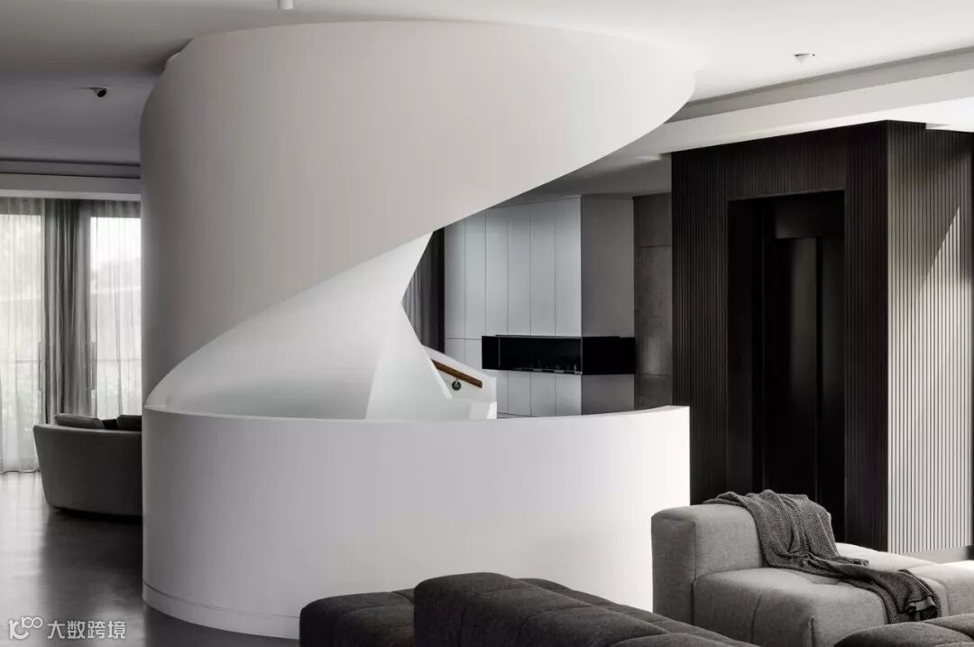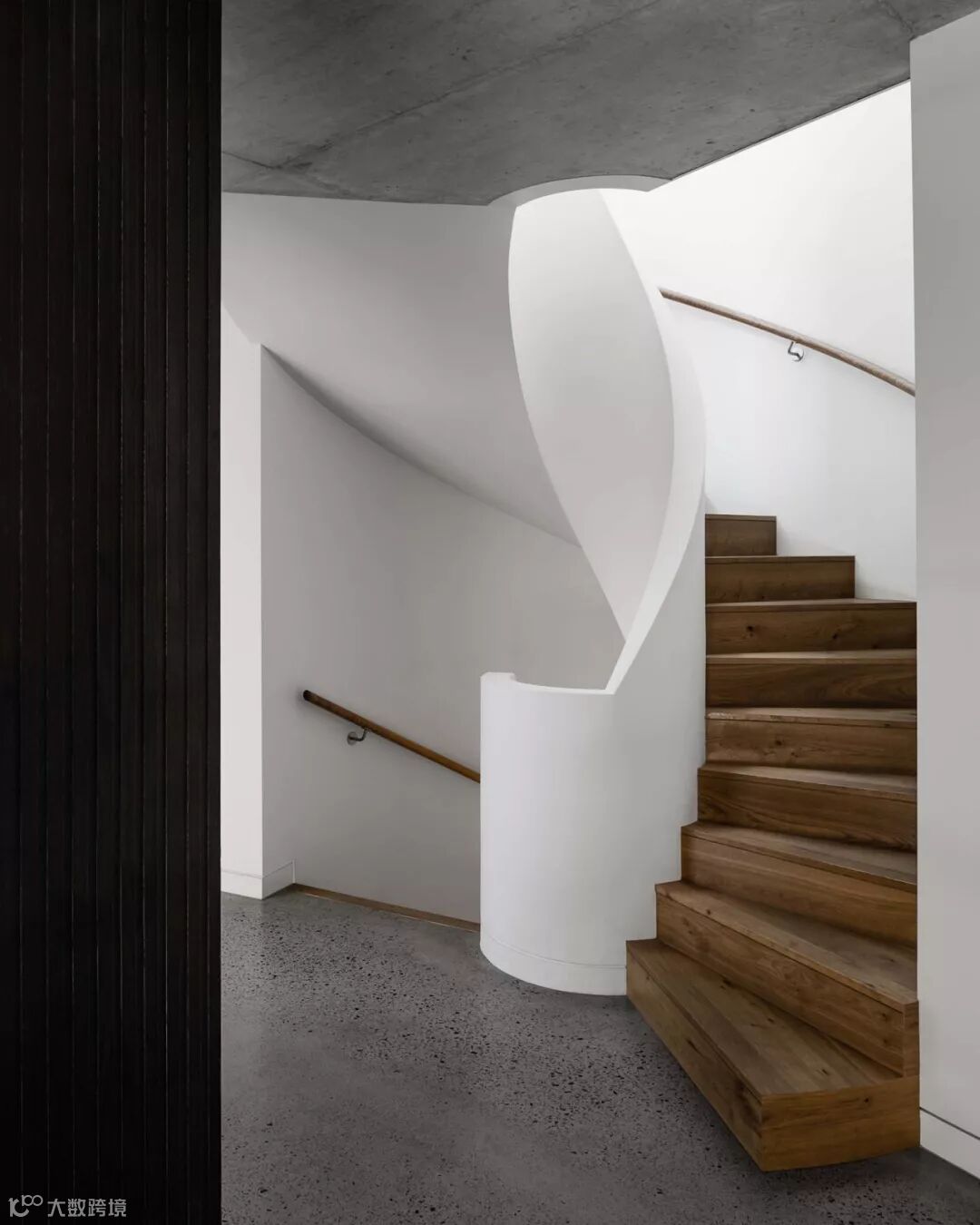 奥利奥之家是一种形式,质感和对比的戏剧。一个螺旋楼梯,其平滑的石膏完成软木从最低水平螺旋到上部平台,是中心焦点。黑色的纹理形式可以在每个层次上筑起楼梯。