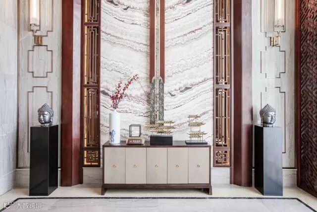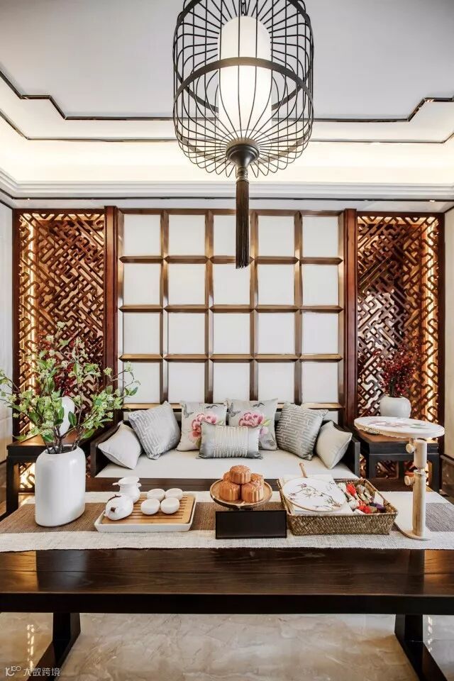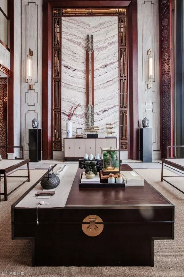 本案定位新中式风格,整个空间贯穿隐喻的表现手法来渲染空灵写意的东方意境。