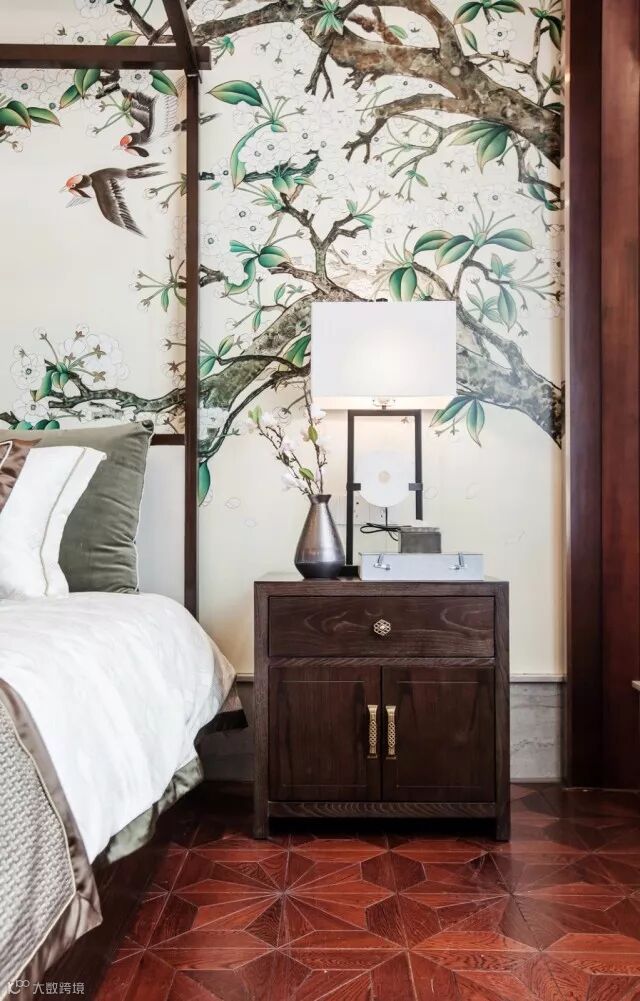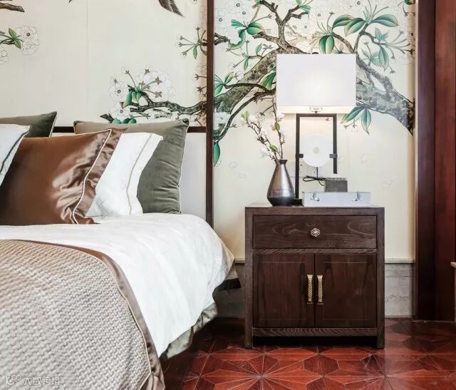 卧室空间在体现中国元素上,摒弃了中国结、雕花等刻意的表达,通过空间的摆设、气味、触觉等,来营造中国传统文化的氛围。