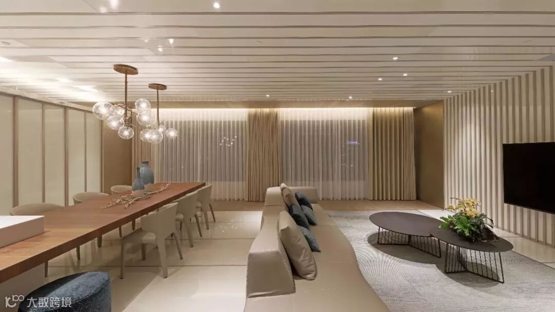 强而有力的仄声韵,滂礡延伸至天花随后,缓缓落入最疏的地板分割线,如和缓的平声韵般,优雅地让一切圆满。