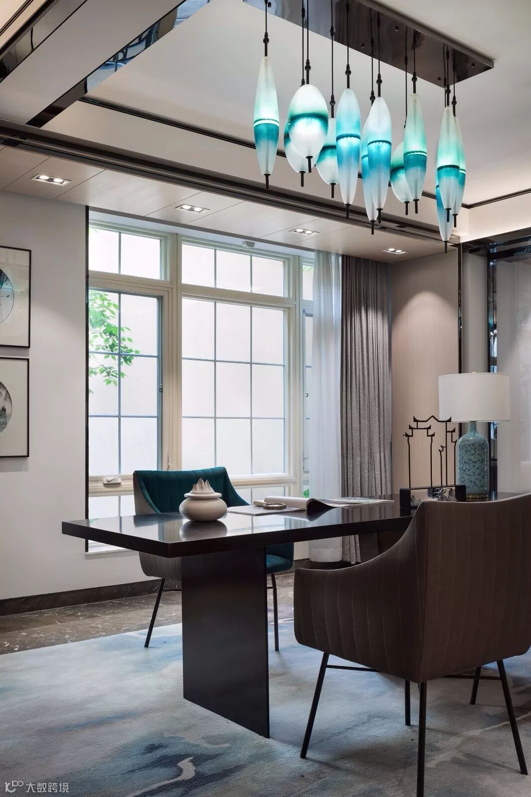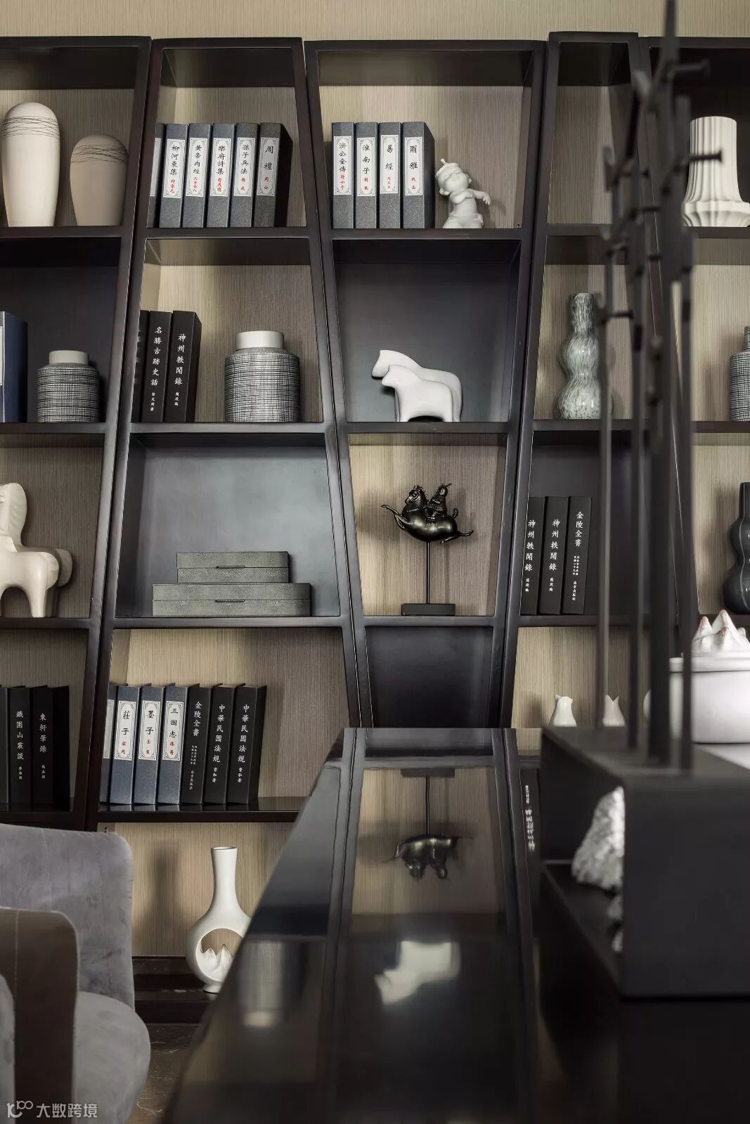开放式书房设计,把书房的功能性与现代人的精神需求相融合,加入些许传统中式元素,与现代艺术糅合升华,在淡雅中体现空灵。