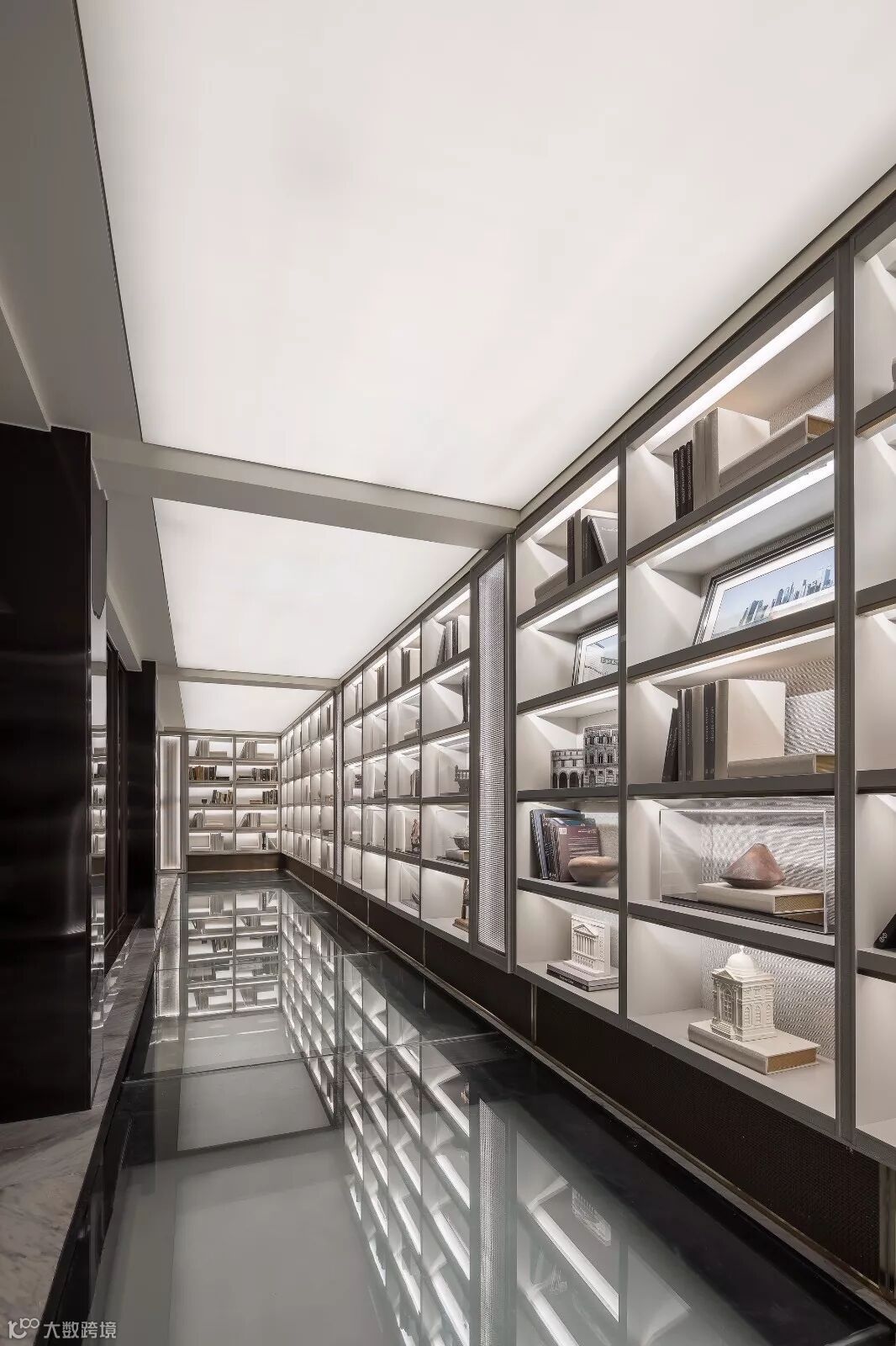 地下空间展现出现代法式时尚而又不失优雅的奢华感。古典风格与现代时尚,在颜色和质感的微妙处理下,巧妙融合出具有灵魂的空间氛围。