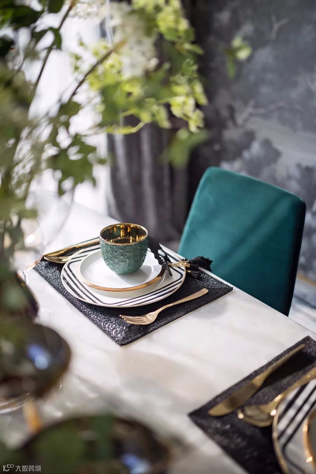 进入客厅,宛如感受了现代与上世纪初巴黎艺术风格在此邂逅。黑白条纹与墨绿色的共舞,在重复、渐变的美学法则下,构成空间充满张力的对话。