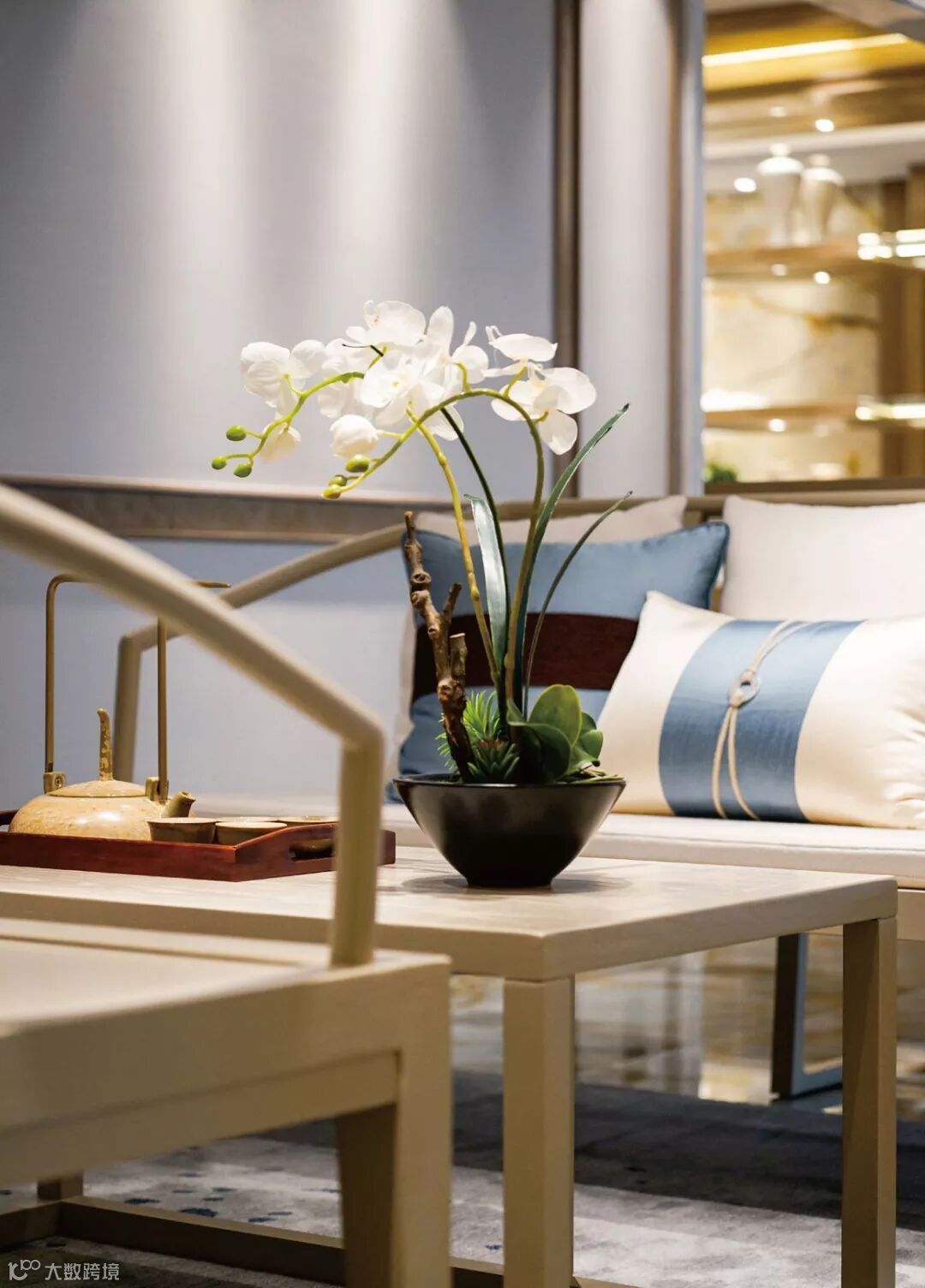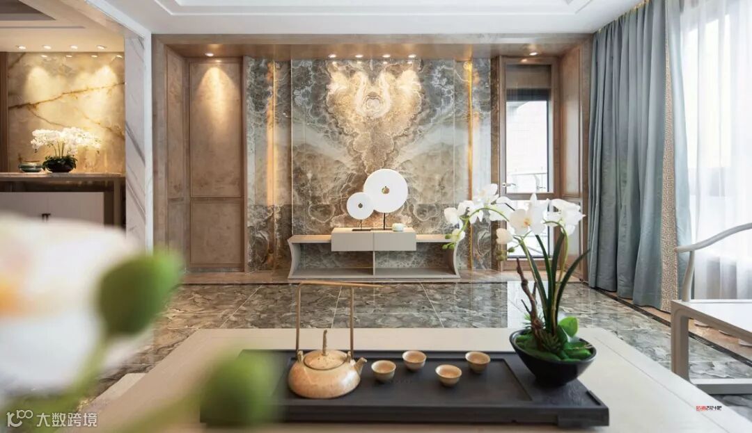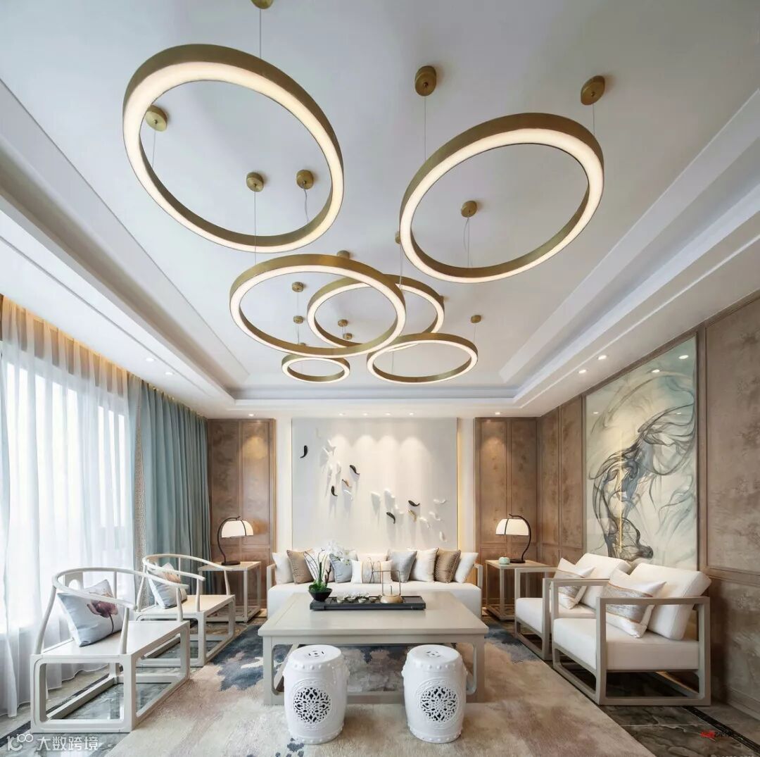 本案运用山水文化为主题设计,并使之成为贯穿于整个空间的一大特色。好的风水世人所求,好的字画亦惠泽八方。客厅的空间处理简洁利落,宽敞明亮。