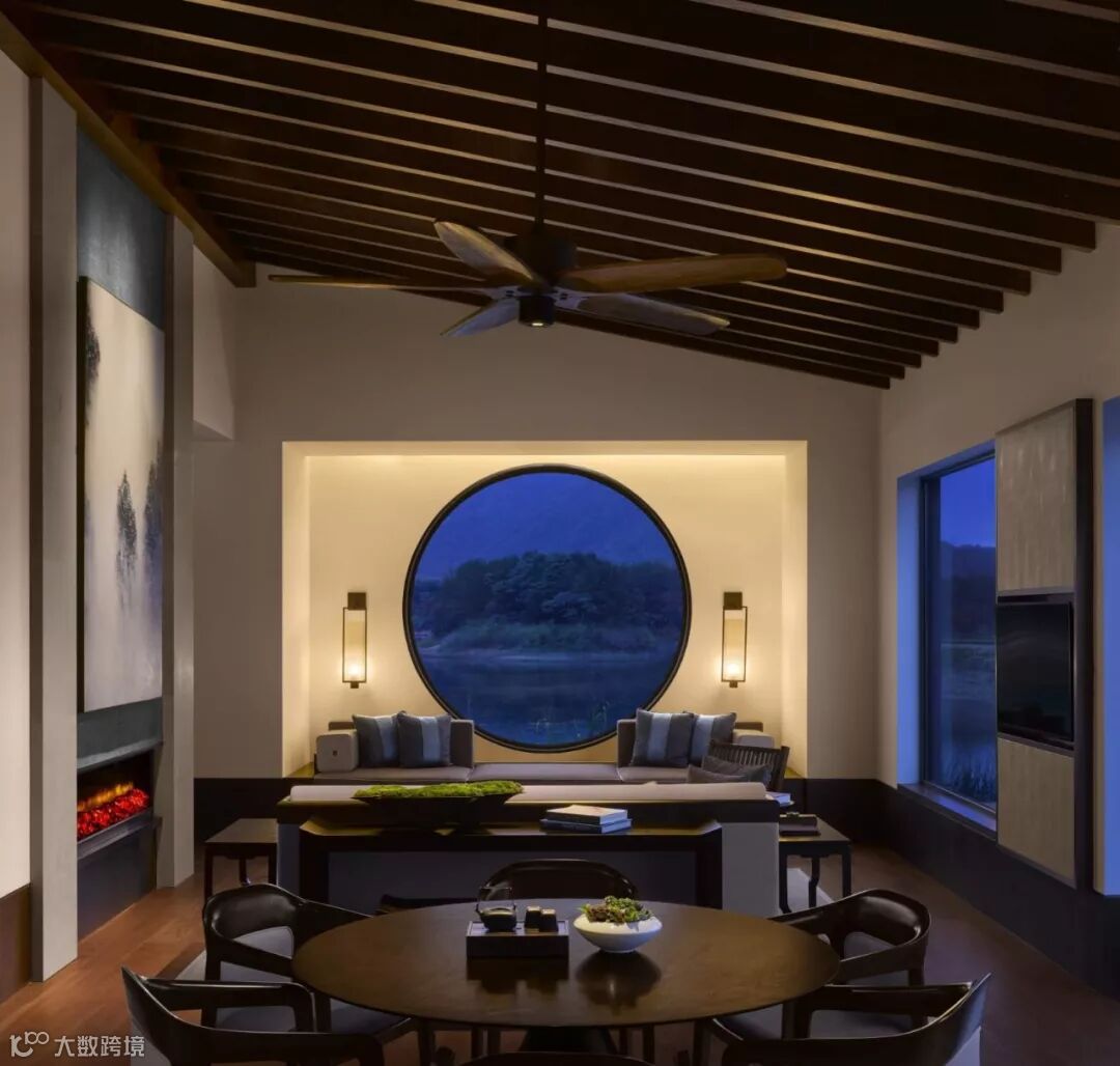 独栋套房的灵感来自中国多年的丰富文化和工艺遗产,在历史和现代设计实体之间实现完美的平衡。所有套房均设有精心维护的花园和带阳台的庭院,可欣赏到千岛湖的壮丽景色。套房配色极为丰富,含温暖的灰色、藏青色和松石绿,模拟出平静湖面的色彩。