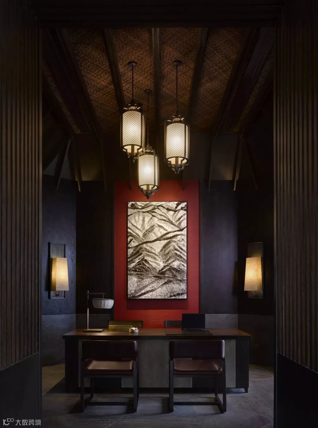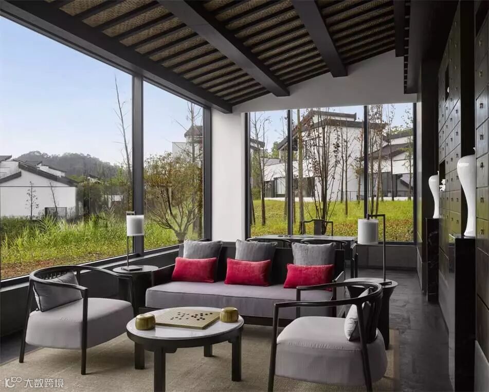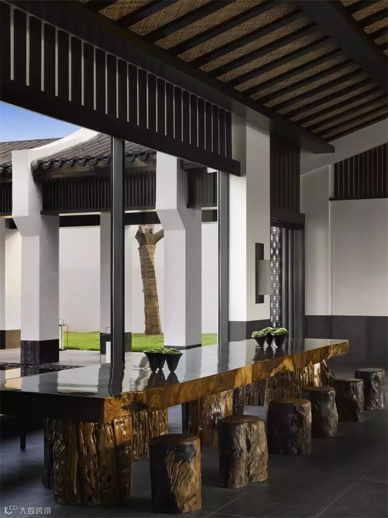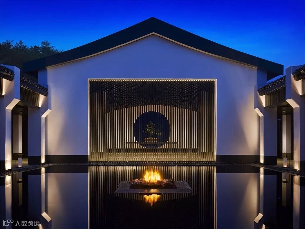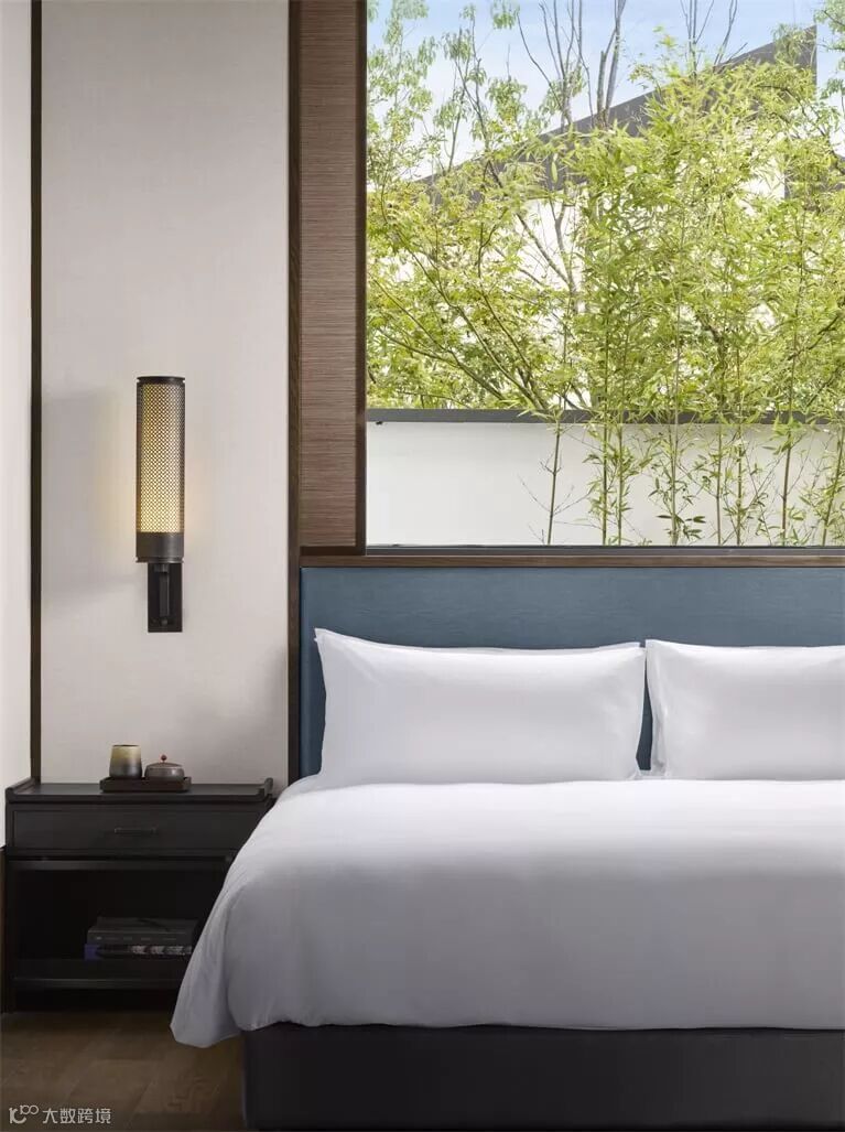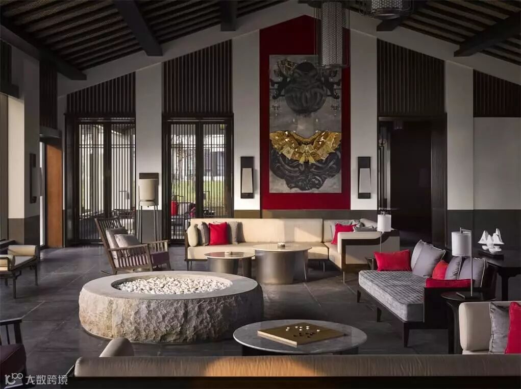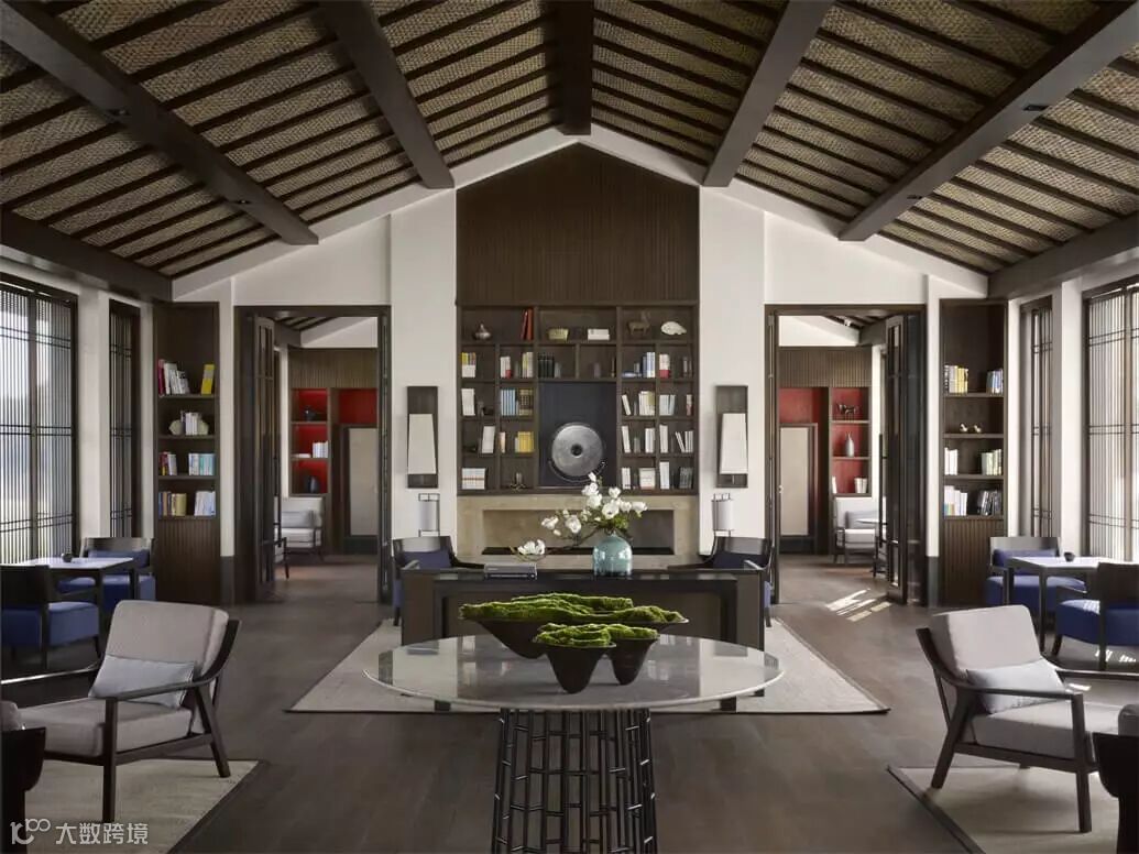 温馨的大堂里,一座中央室外壁炉矗立于倒影池之中,仿佛宁静的感官圣所。花格窗户、深色木质定制家具以及令人惊叹的艺术品为浓浓的江南建筑风味奠定基调。