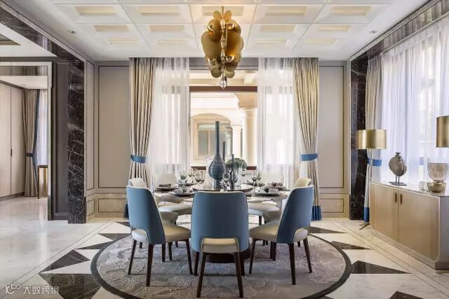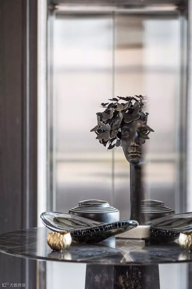 设计师从建筑本身与室内空间的基调上呈现多元兼容并蓄,整个空间冷暖两种色调的对比正是形而上学与现实主义的体现。