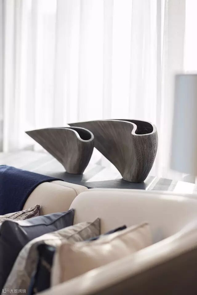 明丽的阳光从落地窗中渗入,所有的颜色展现出本色的自我。站在窗台远眺,仿佛“大音希声、大象无形”,视线收回到室内,柔软雅致的沙发又增添了一份人间烟火。