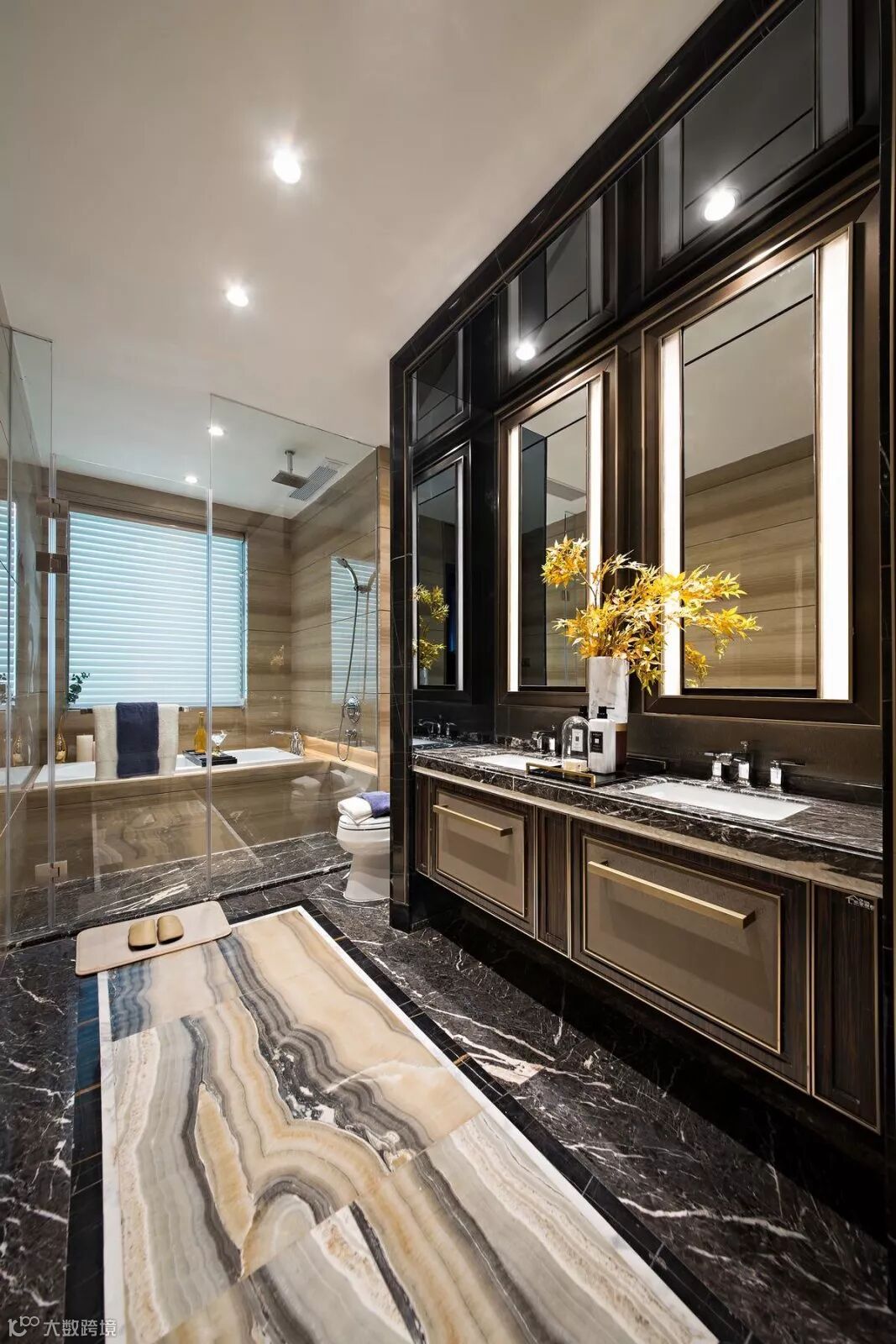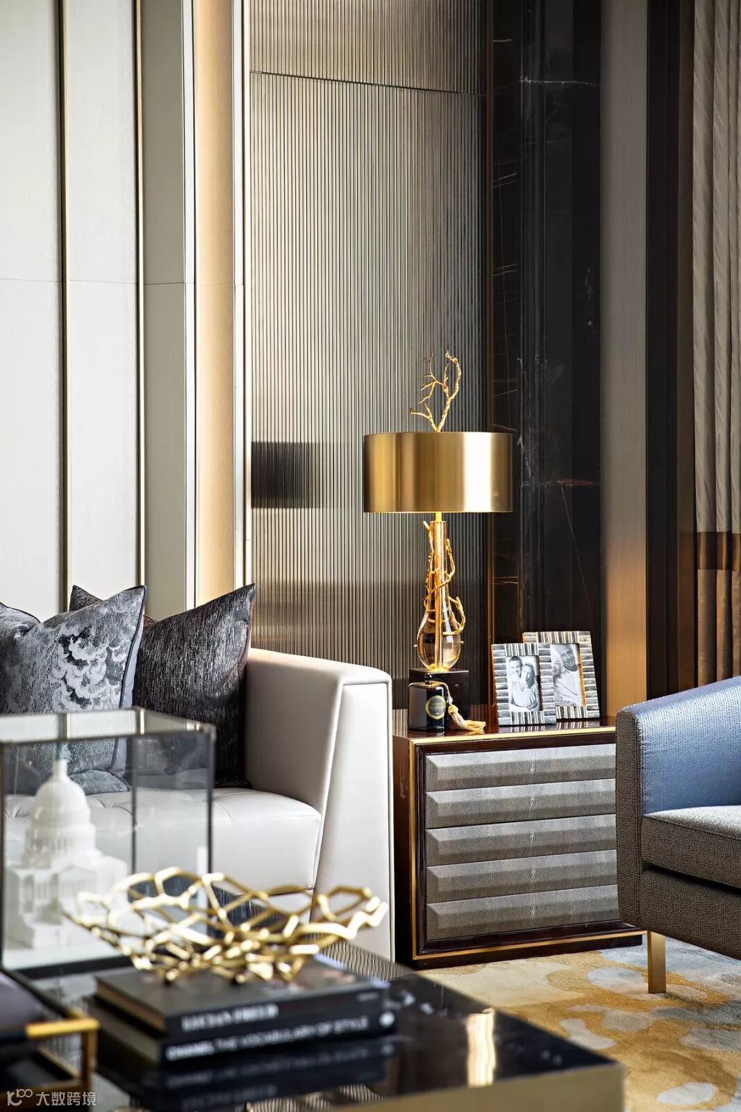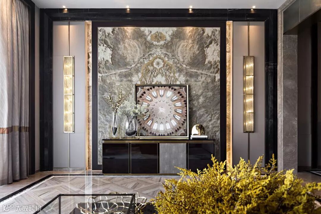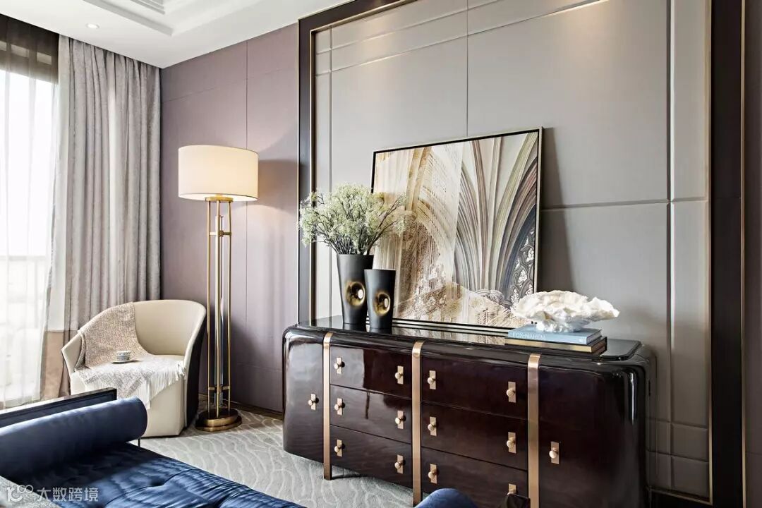 本案以港式奢华的设计为基调,搭配睿智冷静的蓝、自然华贵的金,体现新时代对生活品质的追求,诠释海岸边幸福温暖的时光。