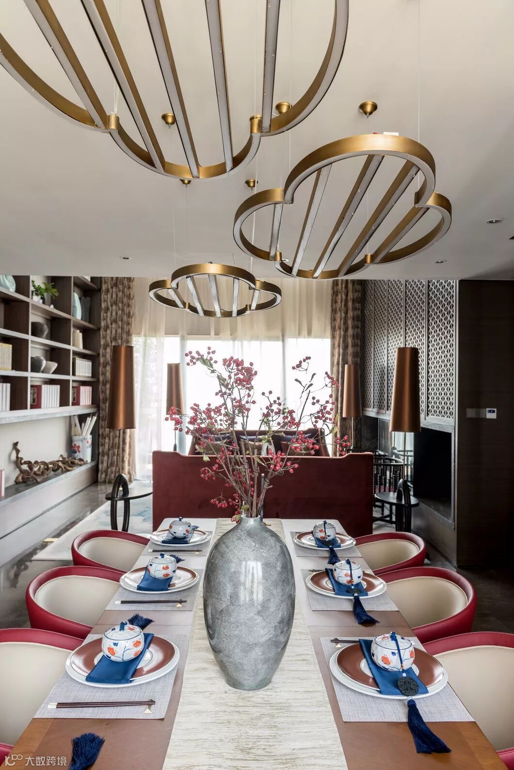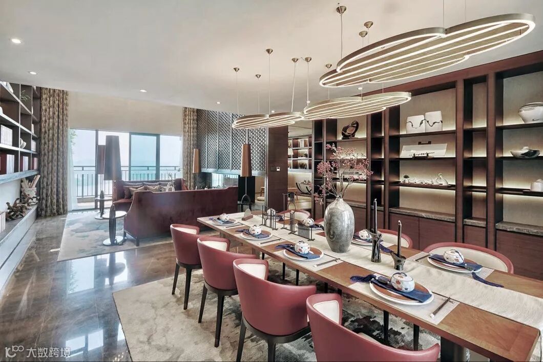 以中国24节气色彩为灵感,引入家居图书馆概念,凝聚起均衡、通达、海纳百川的气韵,与外界广袤的湖景相呼应。