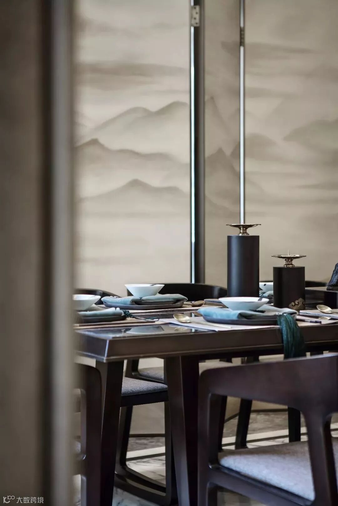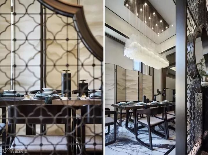 中式屏风的雅致,配合软硬结合的金属感线条,极富质感的餐椅和特色纹案的地板,让整个餐厅仪式感中不乏轻松和舒适。