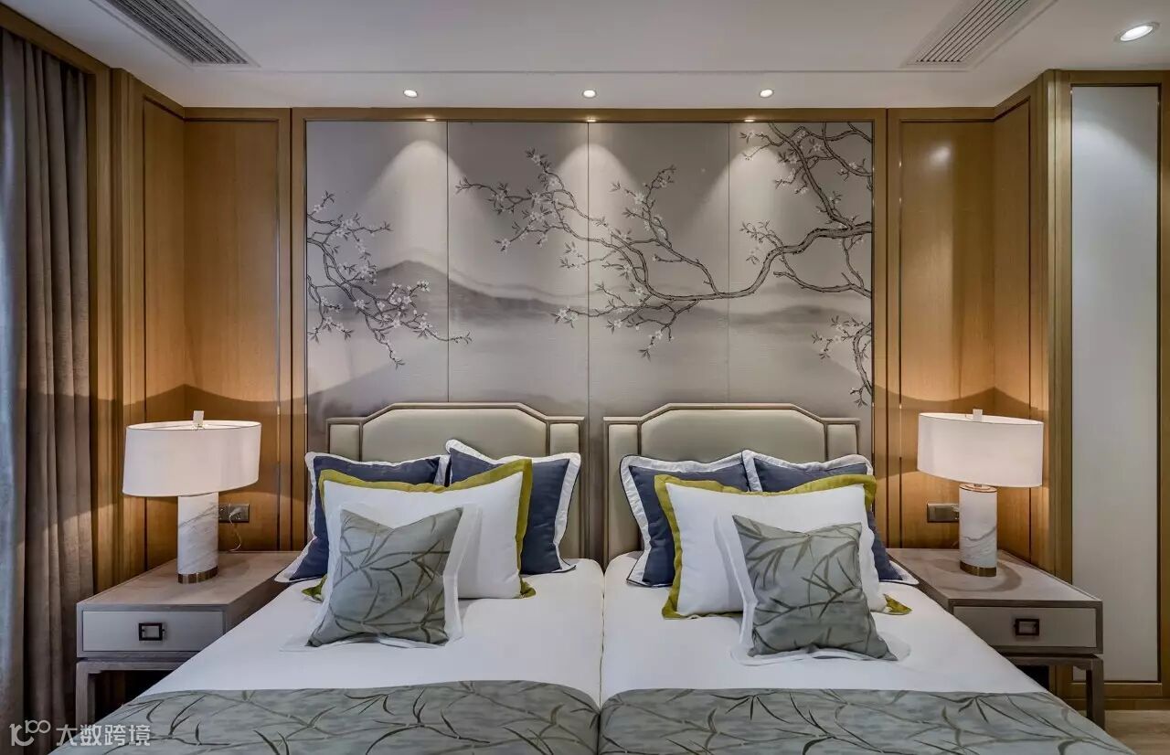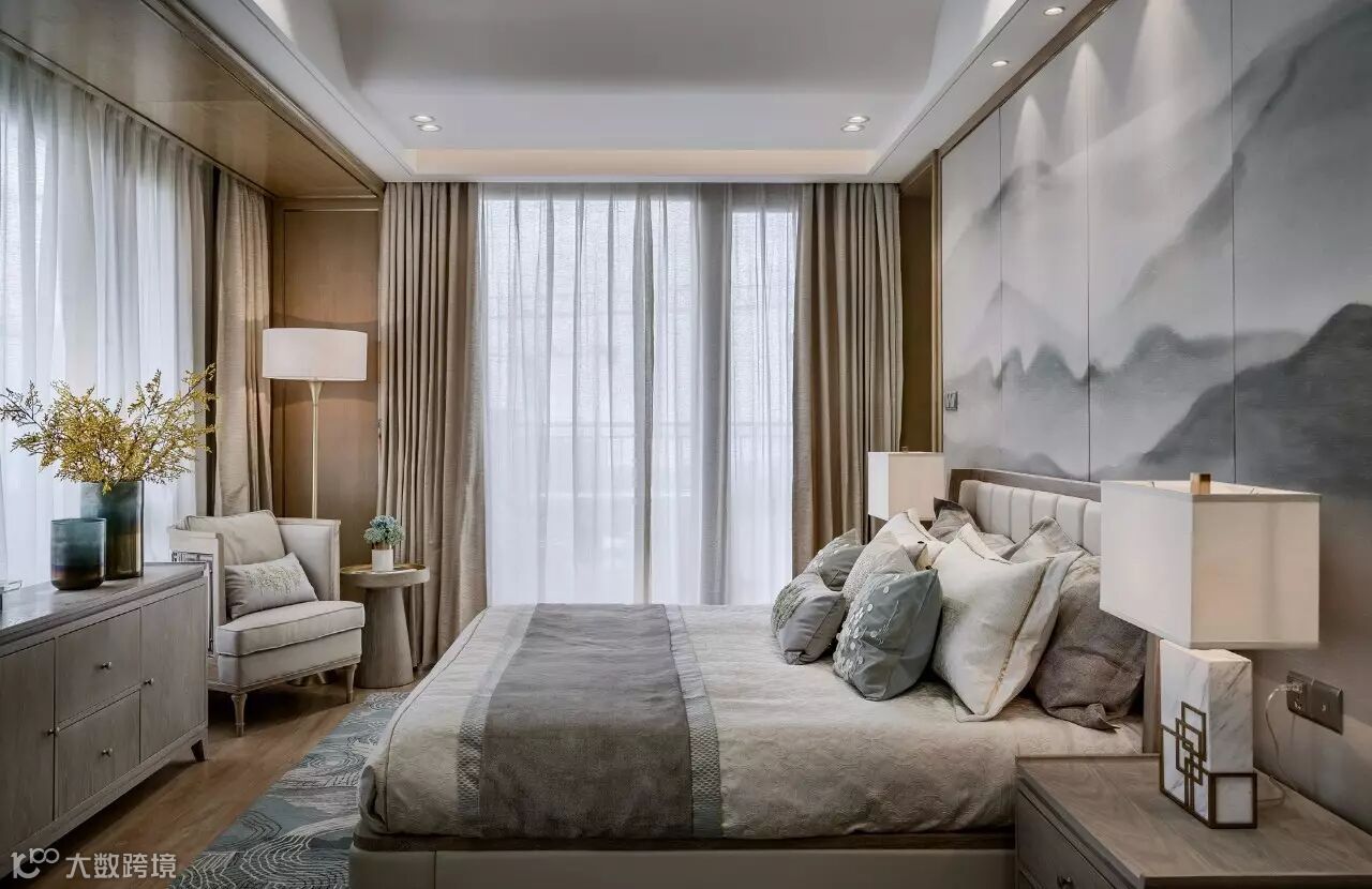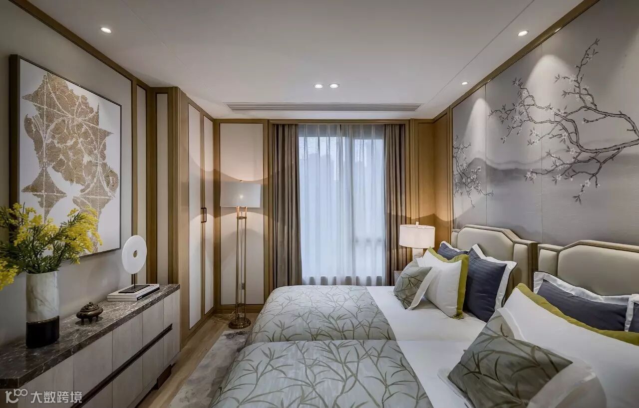 步入主卧,一面朝阳的素雅大窗安静地立着,几缕阳光轻松斜射到光洁地面上。伫立在纤尘不染的玻璃窗前,视野也随之开阔了起来,远景近景一切都尽收眼底。合上窗帘,白日浮沉,喧嚣闹市,在瞬间远离了。松木香在周身环绕,兼有几许茶香氤氲,往日的白驹过隙都成了慢时光。邀三两好友,在中式长型茶几上烹茶畅谈,静静品味人生之味。