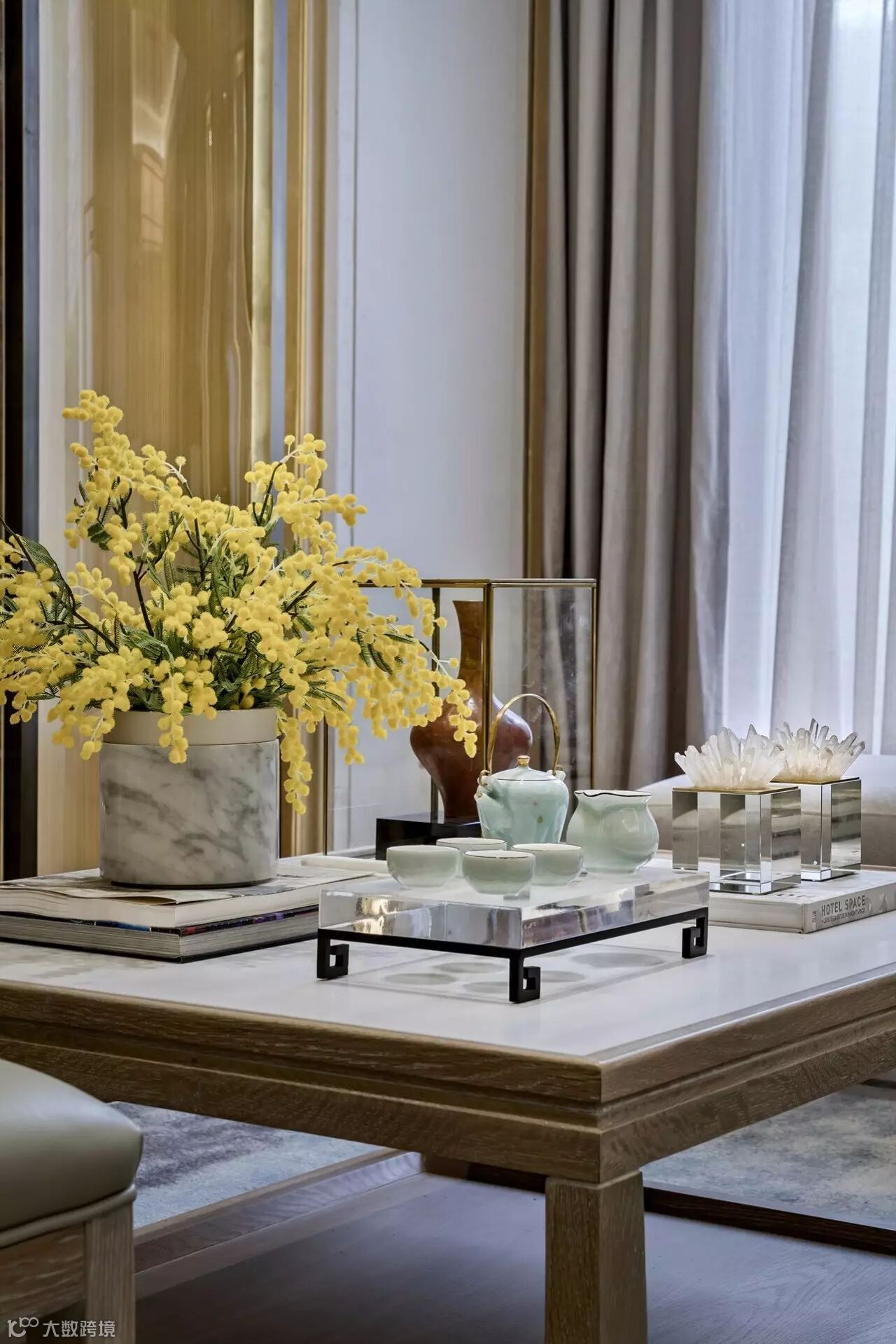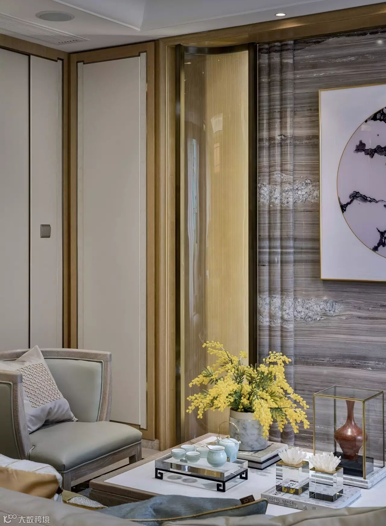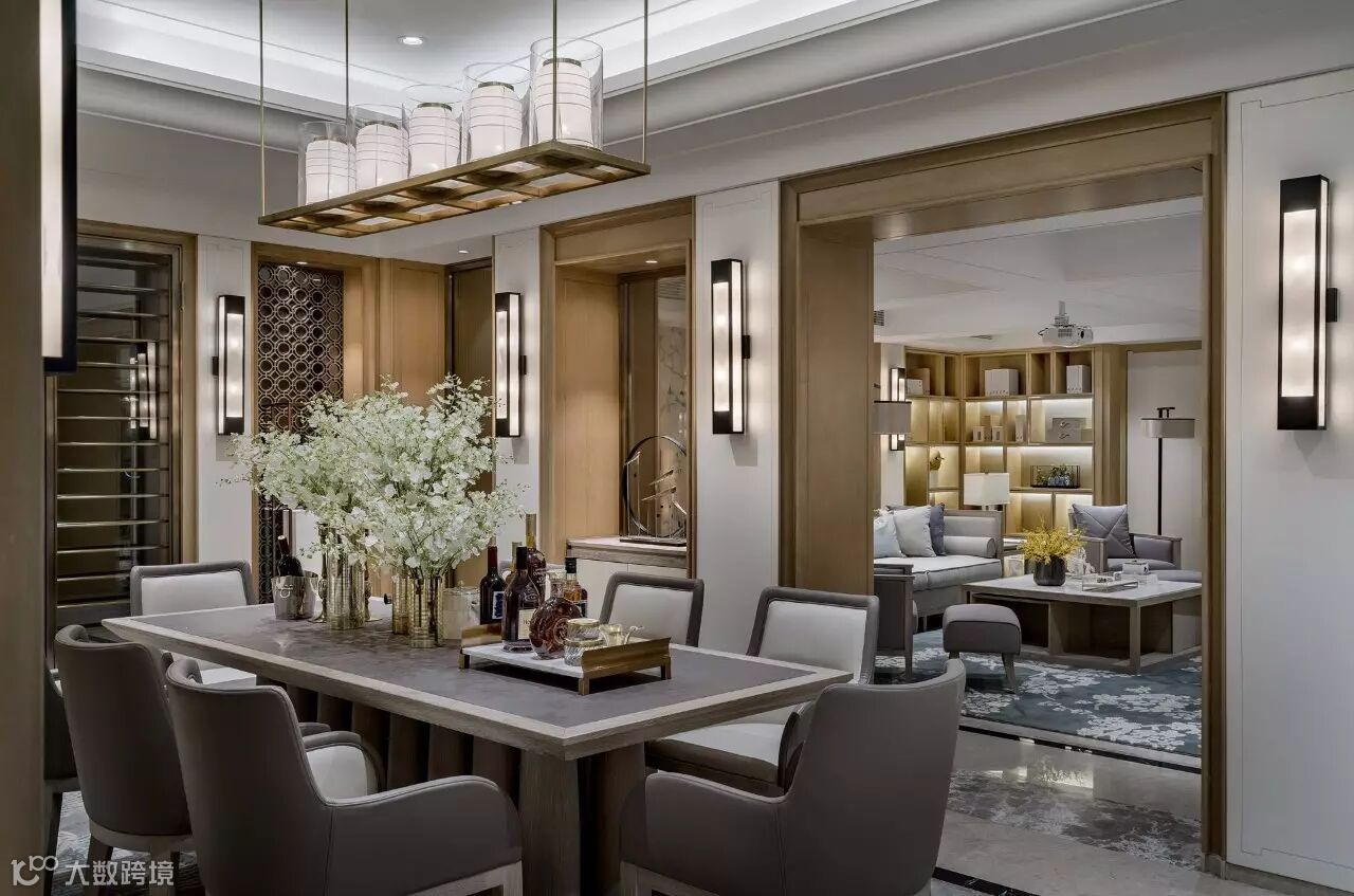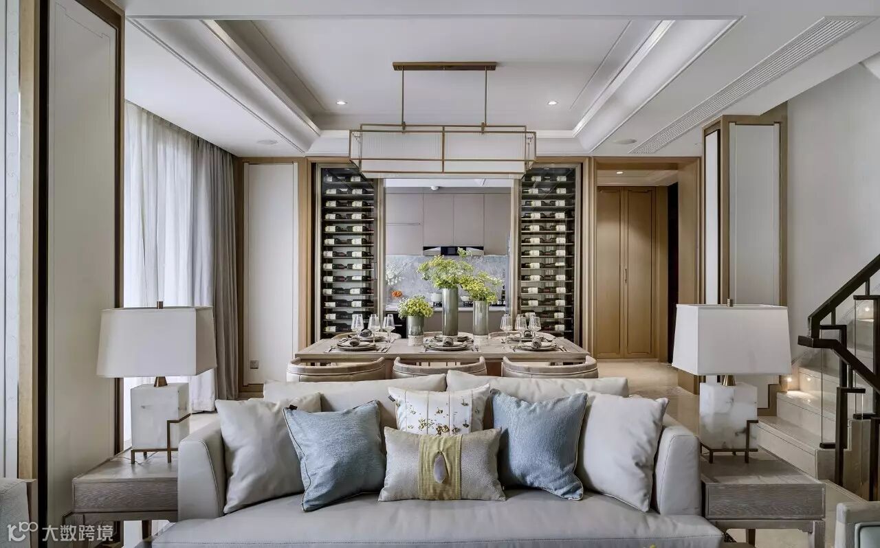 整个空间低调而雅致,不失奢华美感。以淡雅色调为主,弥漫着舒适的气息。或有三两好友来访,在室内沙发、高台、长桌旁,或站或立,人人自得。谈笑有鸿儒,言笑晏晏的热闹充满了整个空间。融洽的交流,让心也交融在这一方天地。桌上花瓶的一抹雏菊,彰显着主人家对生活的热爱,静静吐露着一室淡淡芬芳。