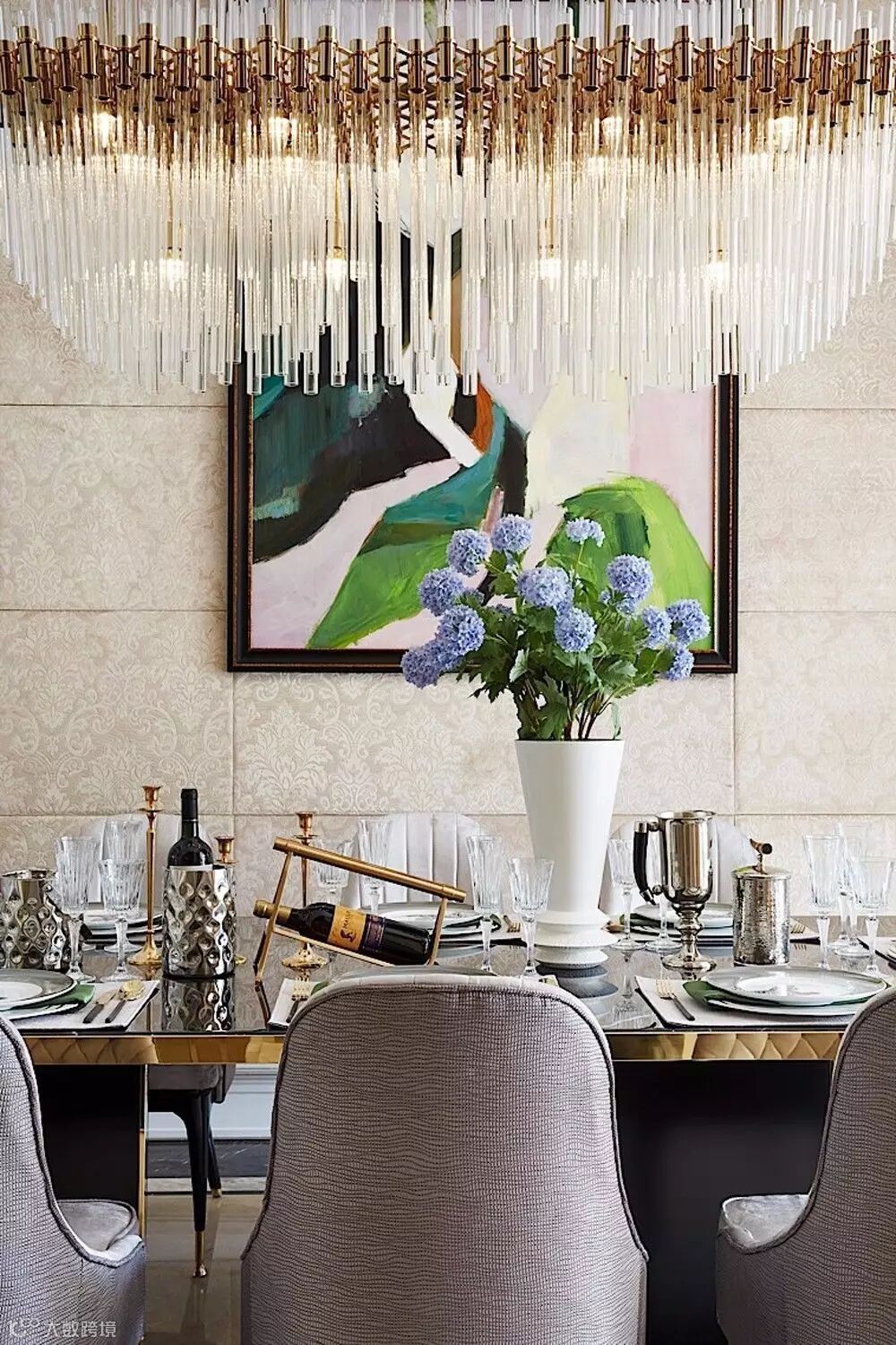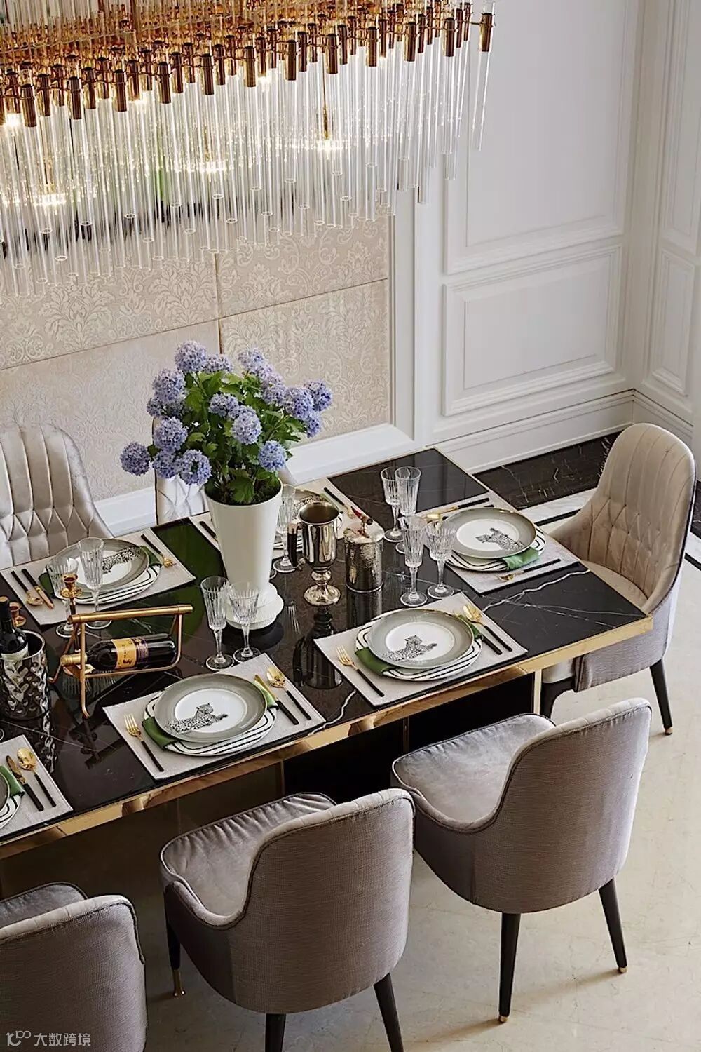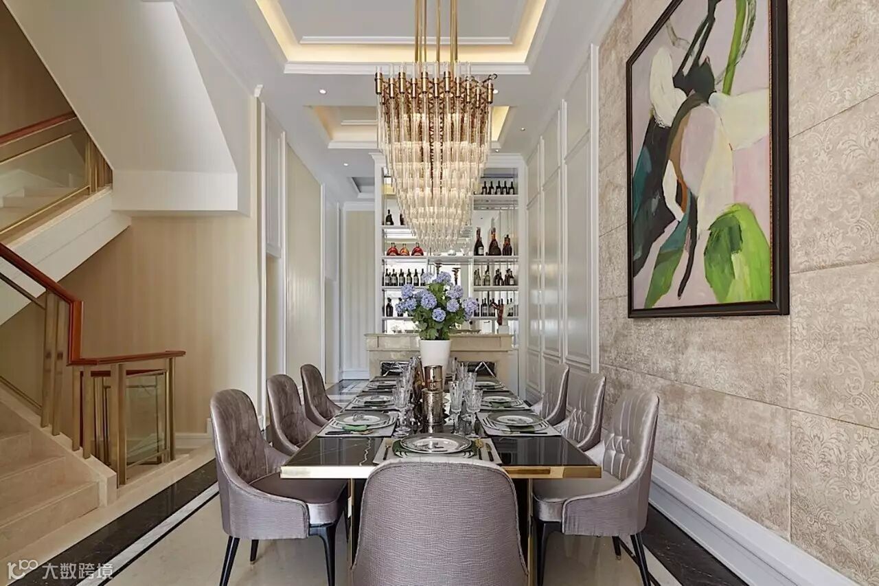 餐厅延续客厅的细腻风格,圆弧型皮革餐椅围绕着八人方形餐桌,温馨的就餐氛围连着美食一起轻轻浸入五脏六腑,在唇齿间留香。