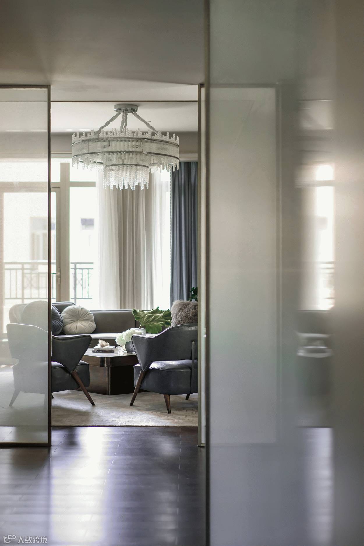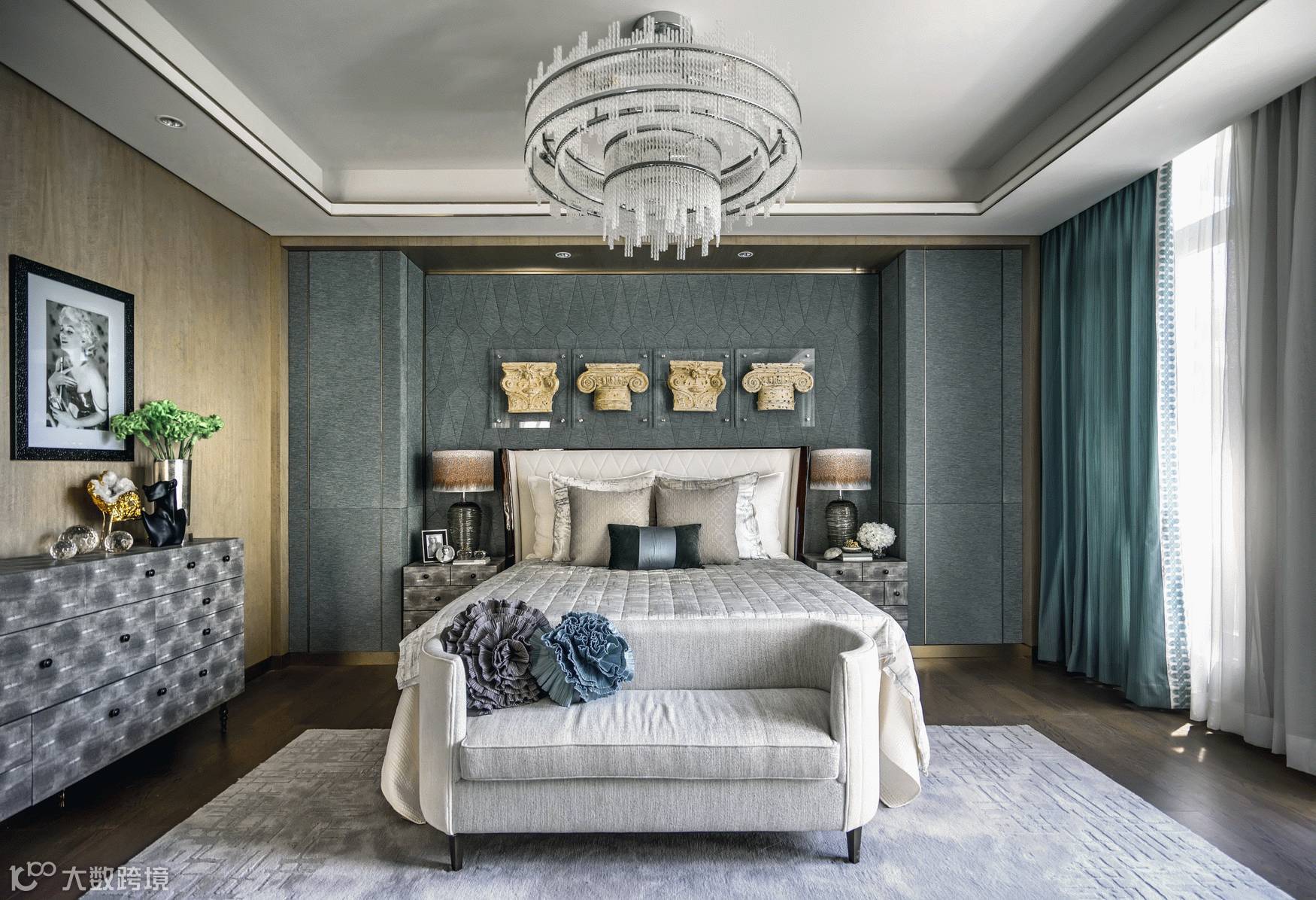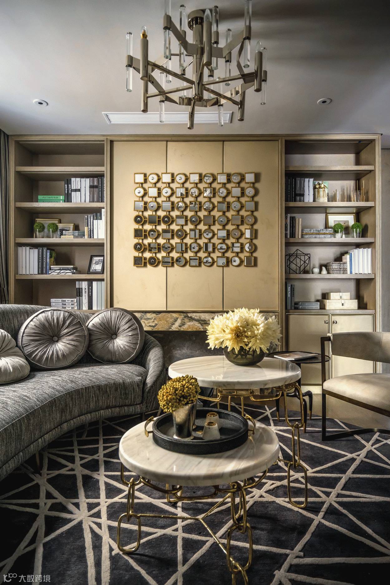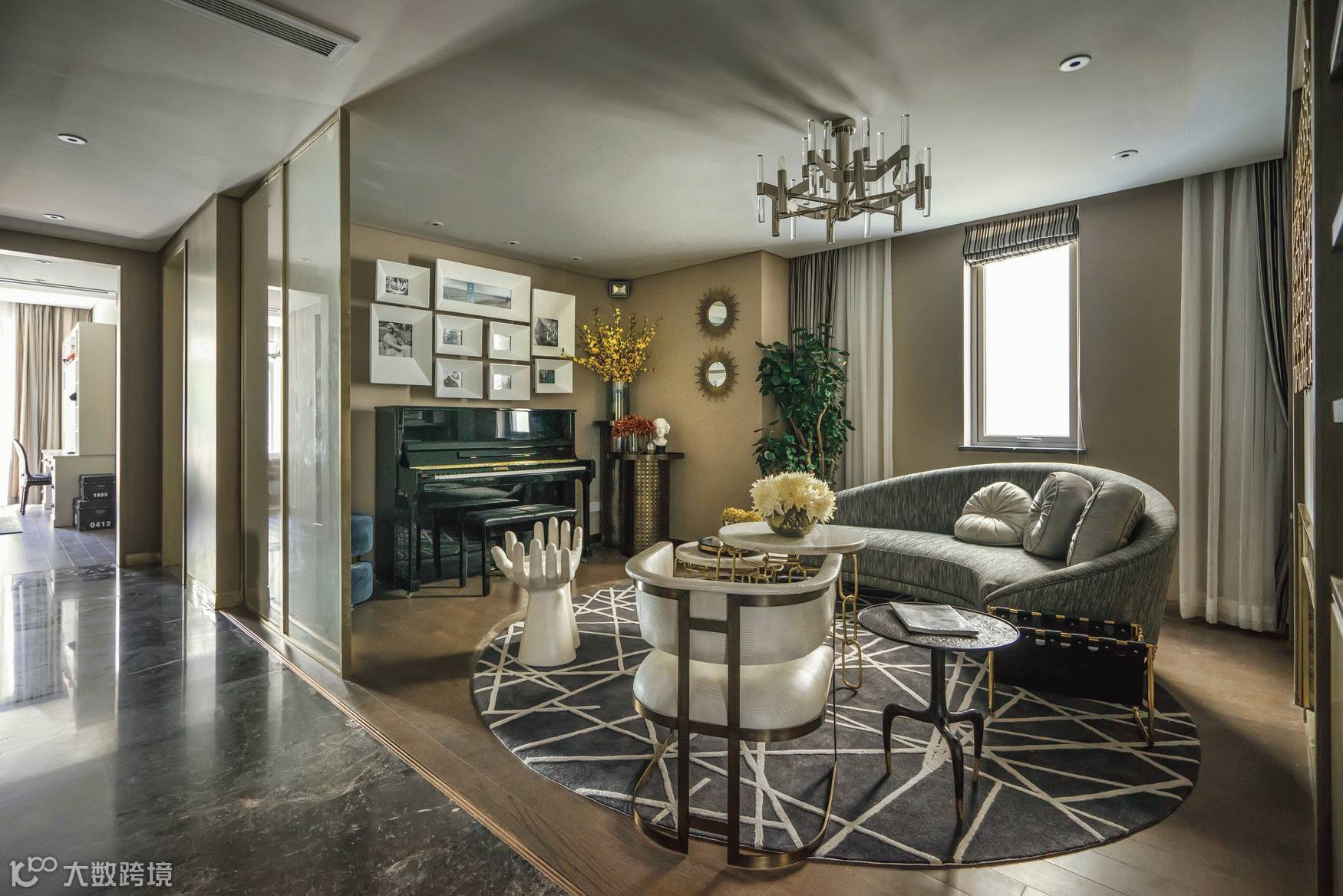 主卧休息室主调为灰色,整体空间庄重内敛,铜质饰品的介入,形成一脉形成的艺术感。