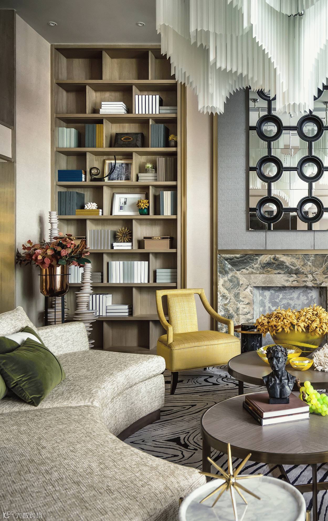 聚会厅的空间中,温润的黄翡色泽介入,材质的混搭与精致的工艺形成一场精心的铺排,简洁有力的设计语言,抽象的艺术画与精致雅趣的饰品在同一空间并置。