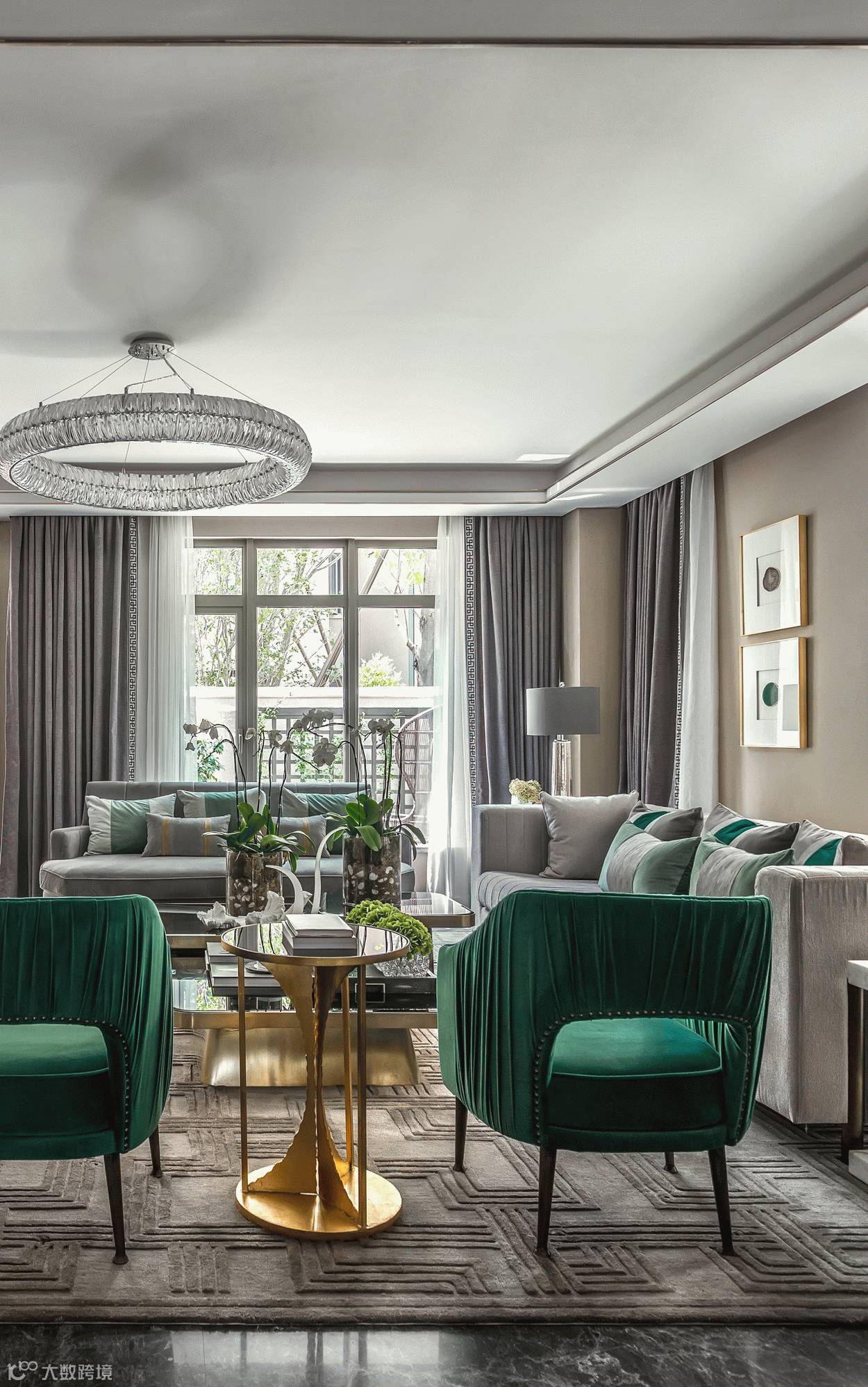 客厅与餐厅的设计中,高贵的气质在祖母绿与高级灰结合的刹那占领整个空间,在温润如玉的质感与盈透的色泽中,彰显着无与伦比的诱惑魅力。 她说:我想要让身处其间的人,在妙曼的视觉感受之后,发现有某些元素能够触碰我们内心的原点。