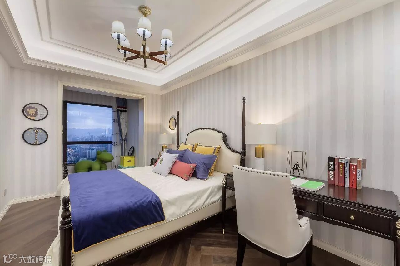 男孩房运用斑斓的色彩激发无限潜力,让细腻的关爱充满每个角落,与PONY小狗和黑胡桃床铺约定,同你一起长大。