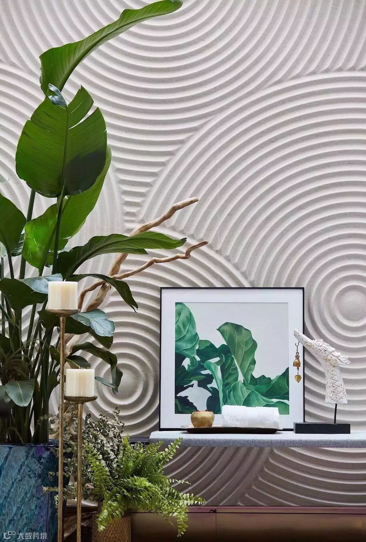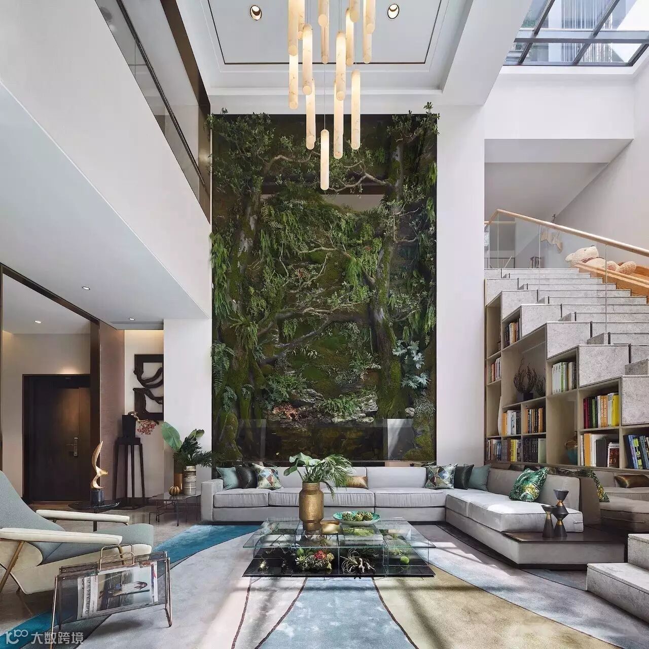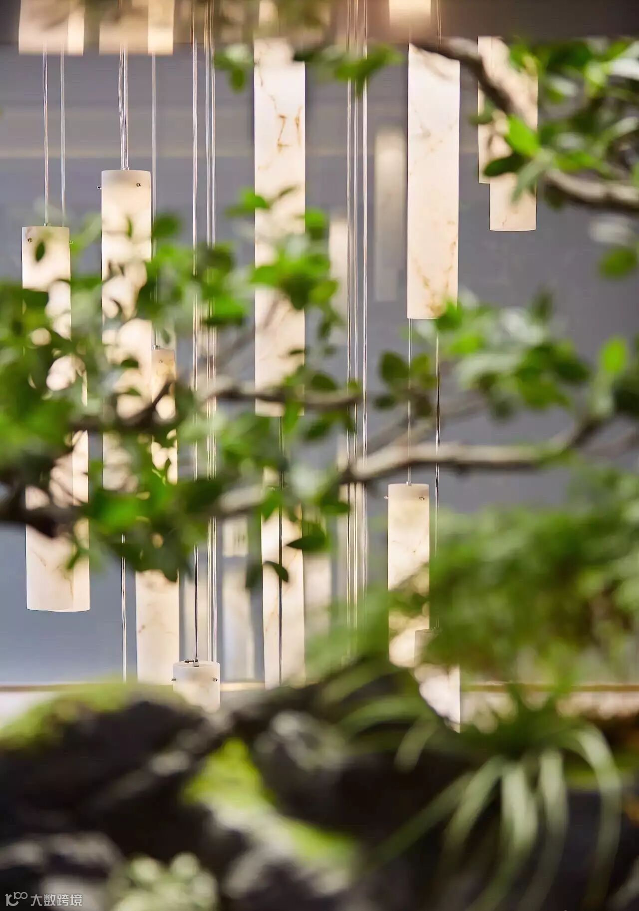 为了延续“院”的概念并把“景”影射进室内,我们把设计让位于自然光,通透的天井将自然光顺势带下,又有垂直挑高生态雨林墙与之呼应,临摹出一派闲适自在。