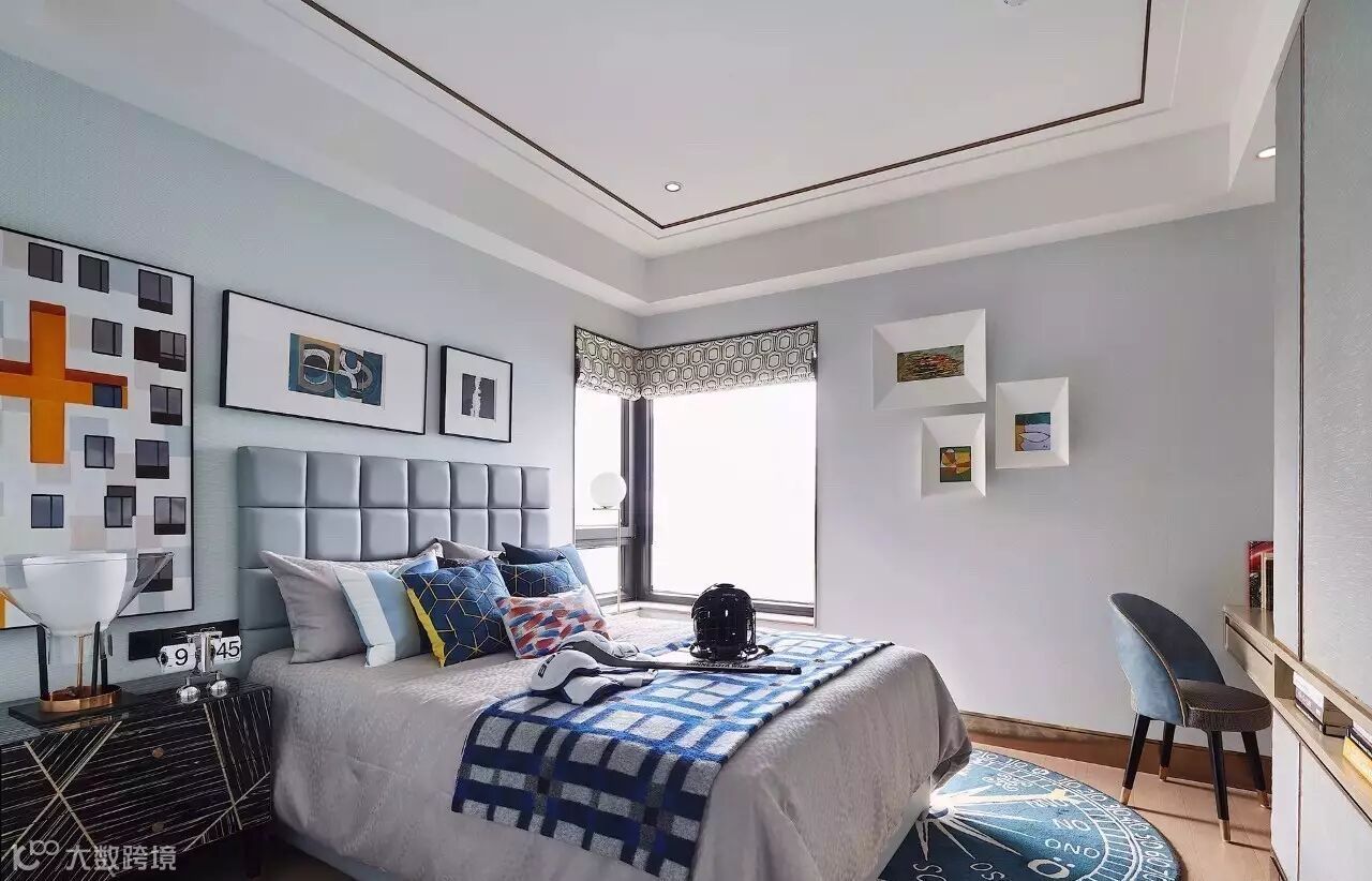 男孩房以“冰球”作为空间的主题,蓝色和红色颜色的俏皮搭配,充分把这个大男孩跳脱快乐的性格表现出来。