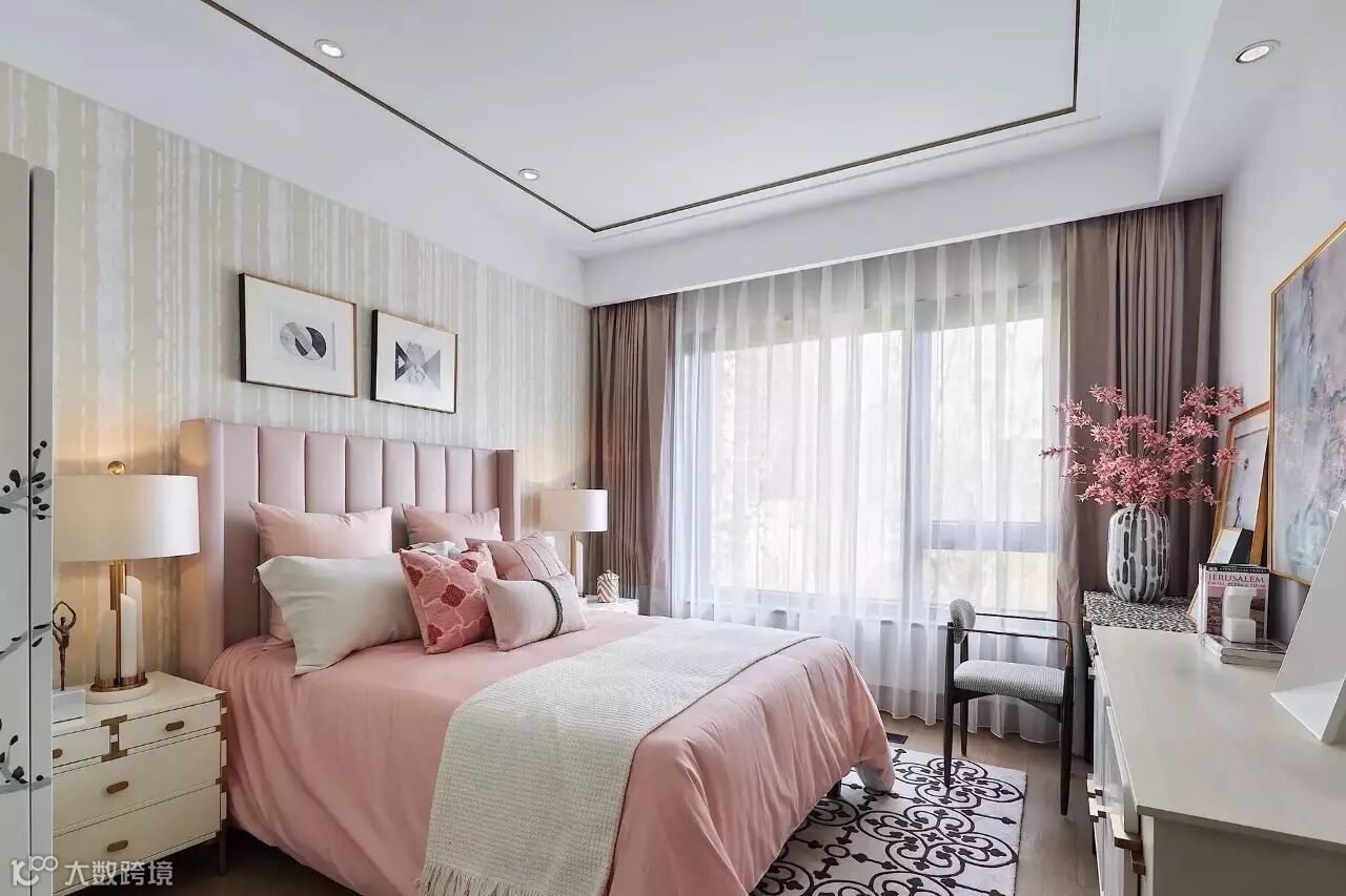 女孩房则以粉绿色的柔美基调打底,轻柔舒适的窗帘,少女感十足,恰到好处的饰品轻柔地点拨,营造一个不愿醒来的温馨美梦。