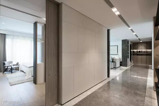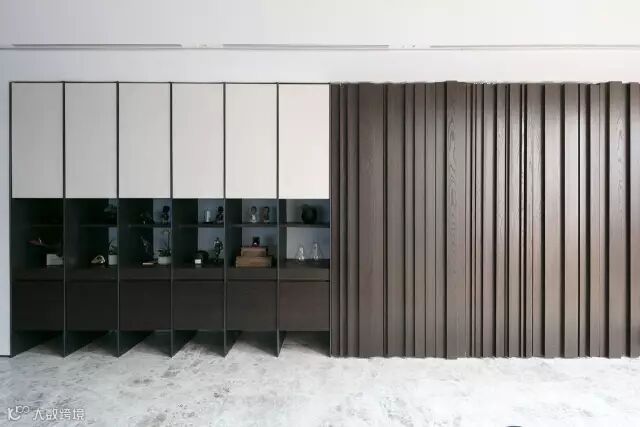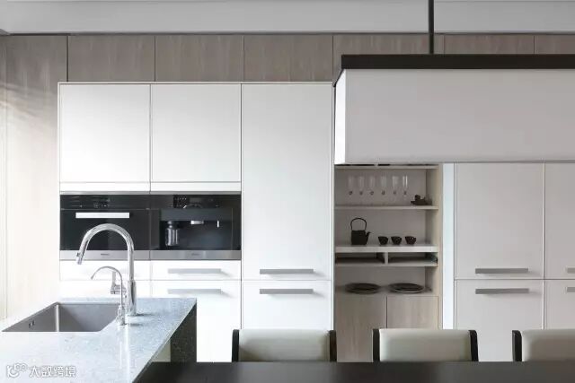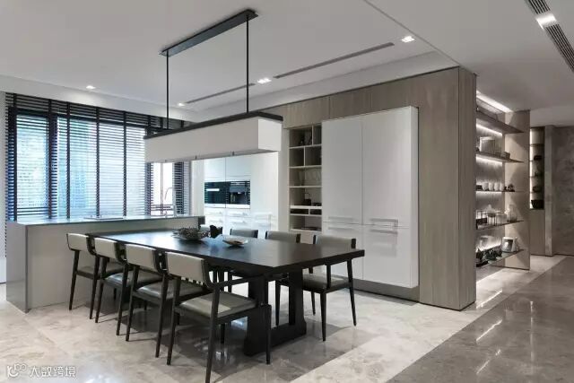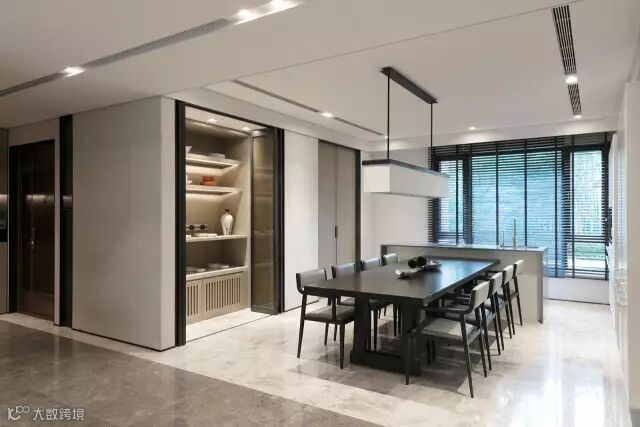 在餐厅侧墙之中,运用进退层次的规划产生空间的量体,诉求空间的机能本质。远观下大器壮阔的造型,近看则带有似无痕却蕴含细节的巧思,利落明快之余,更具美学深度与精致性。