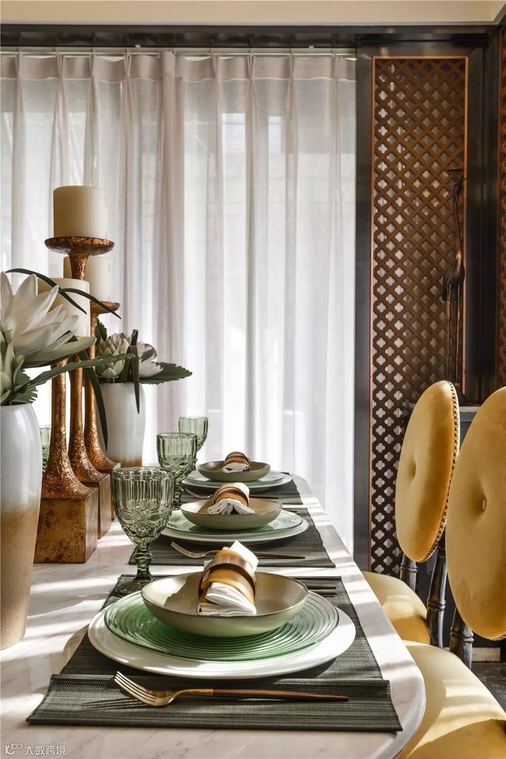 木质桌椅、棉麻软装,时尚的东南亚灯具、挂画