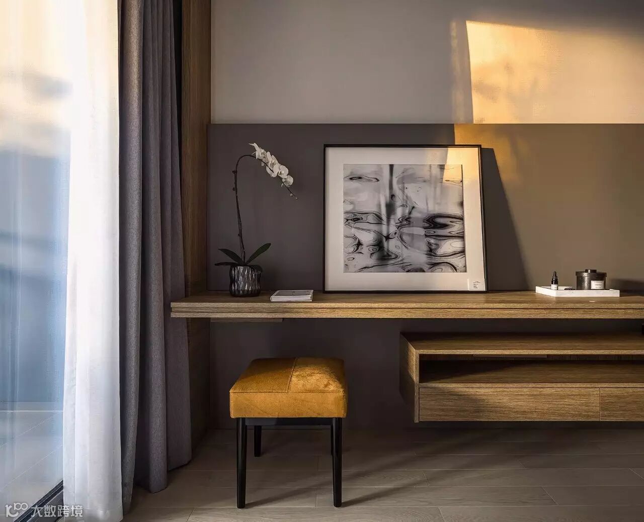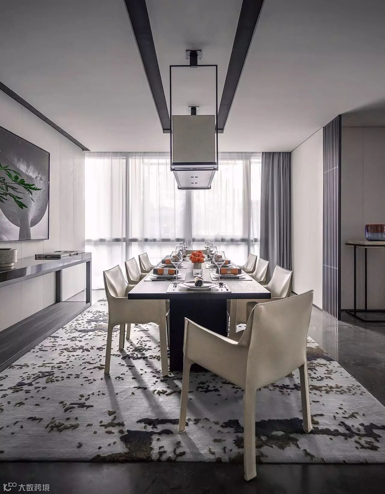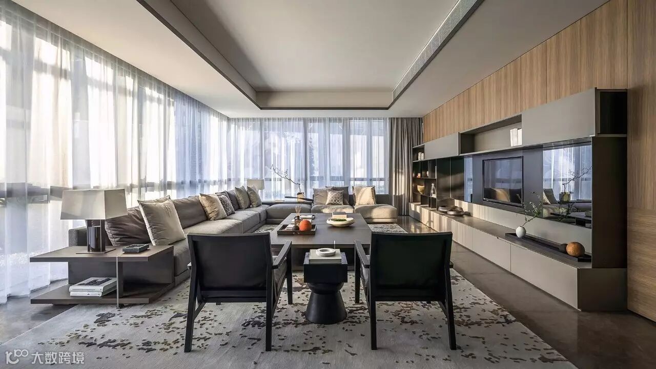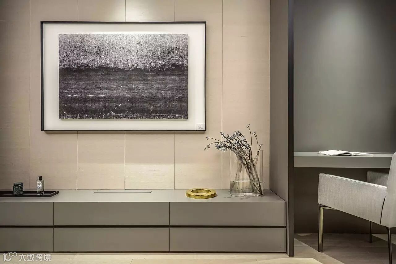 整个样板间并没有一种很“满”的感觉,而是巧妙地通过“质”,使得整体空间变得精简且丰富。全球顶级的家居,配合艺术感极高的饰品,不但每个单品都有极高的可品性,整体空间的艺术气质也耐人回味。这样的空间,让人无法移步,似乎每个角度,都具有自己独特的观赏性。另一方面,现代简约风格的整体空间格调,高品质材质的运用,以及充满变化及人性化的空间规划,同样使得空间的功能性也值得细品。