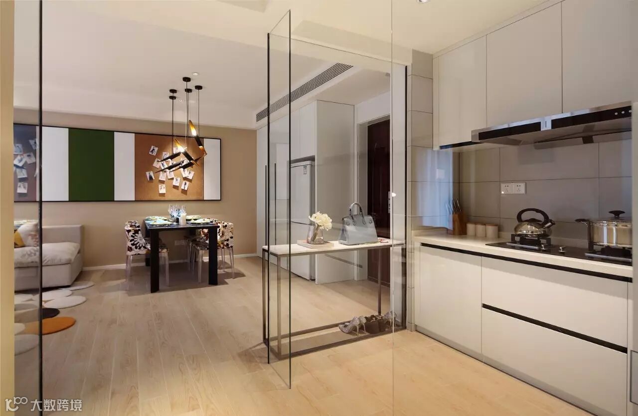 餐桌旁的边柜同样遵循白色为主调,线条粗犷的房顶和门框,镀钛不锈钢黑色收边条,有种岁月沉淀后历久弥新的味道。