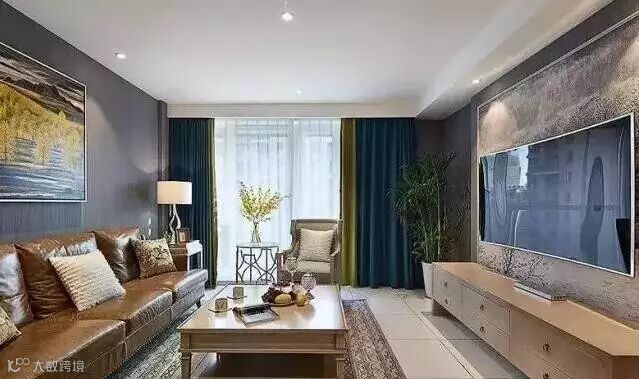 美式风格的家居,自然少不了复古风的棕色皮质沙发,搭配美式风格的浅色系方形茶几,华贵又大气。
