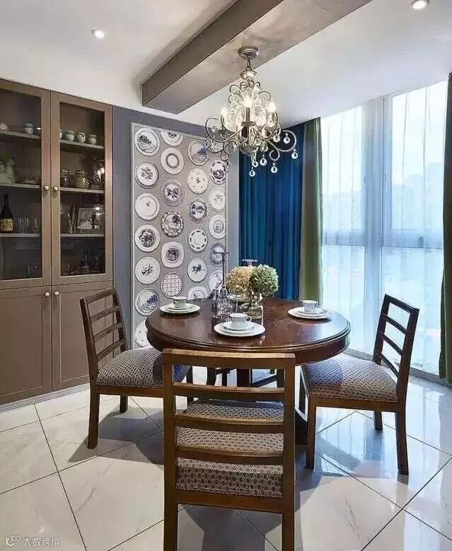 餐桌旁边设计了顶天立地型的餐边柜,让收纳空间变得特别充足。