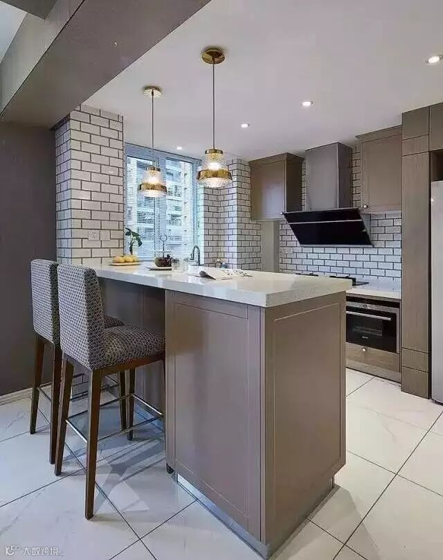 U型橱柜靠外的一边同时也是一个吧台,成为厨房与餐厅的区域隔断。