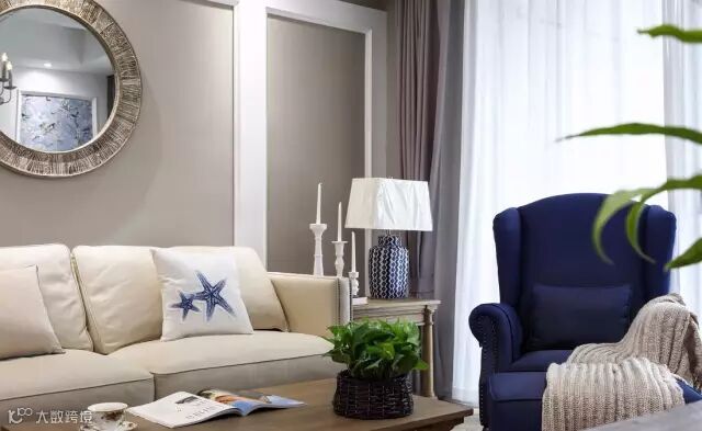 ▲在素雅的客厅空间里,蓝色的沙发格外跳跃。