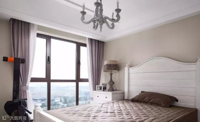 ▲米黄色的彩漆配合纯色的窗帘,营造了舒适的休息空间。