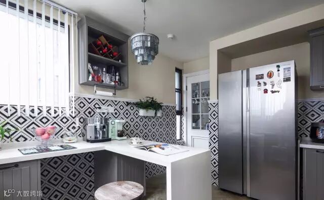 ▲哪个家庭主妇不想有个大厨房呢,经过改造,原有空间充分利用,吧台与超大储物冰箱得以实现,墙砖也很美。