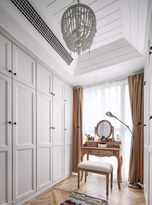 ▲有个性的天花造型吊顶,让衣帽间感觉很高很高。