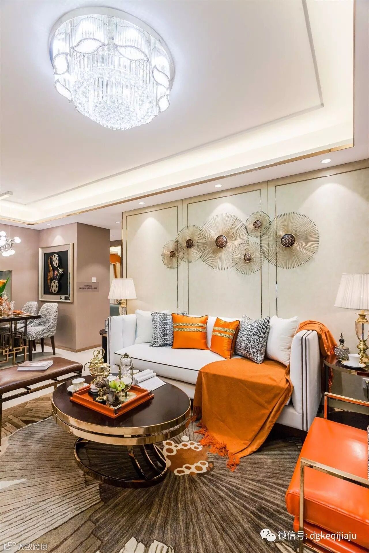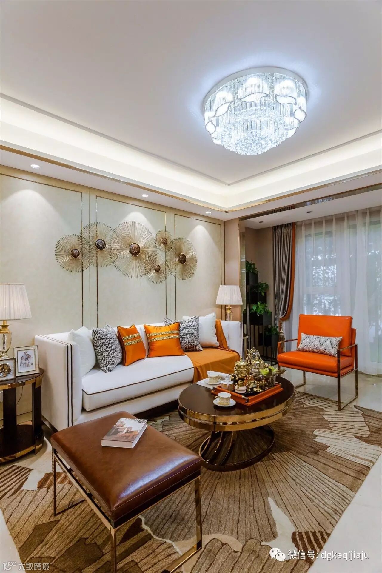 优雅客厅配上定制沙发,白、橙色抱枕,使空间更加灵动且有活力!
