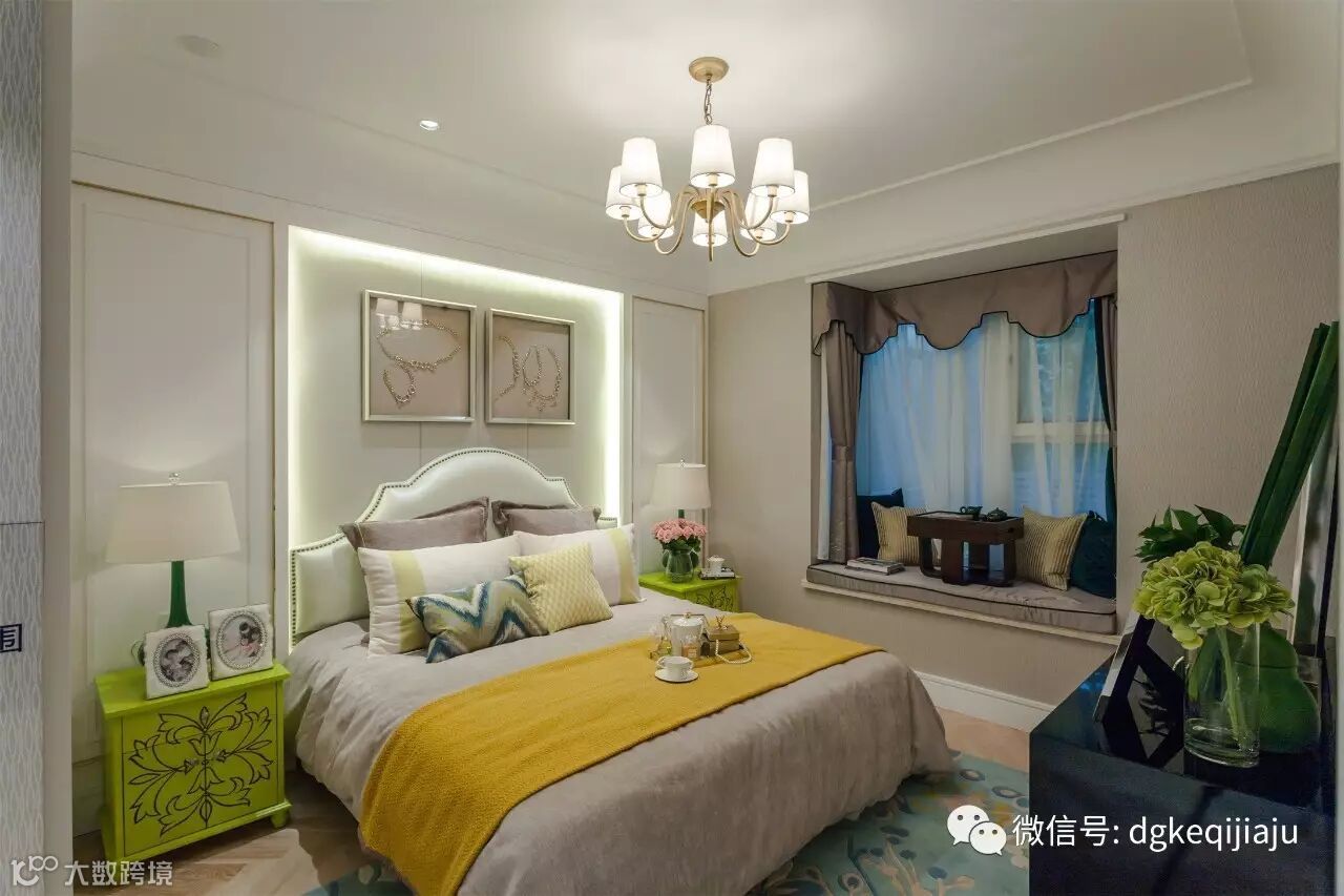 背景墙深邃清爽,飘窗设计简约柔美给人舒服安宁的享受。