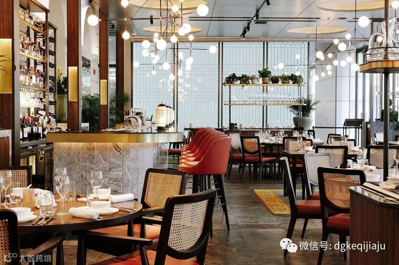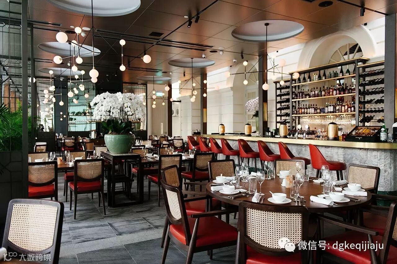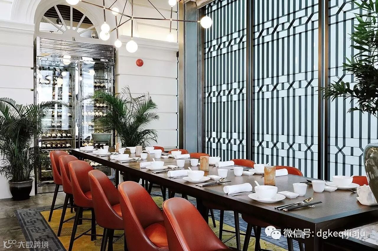 设计师考虑到餐厅特殊的地理位置:一侧靠近新加坡河,一侧靠近博物馆,也因此设置了两个入口。